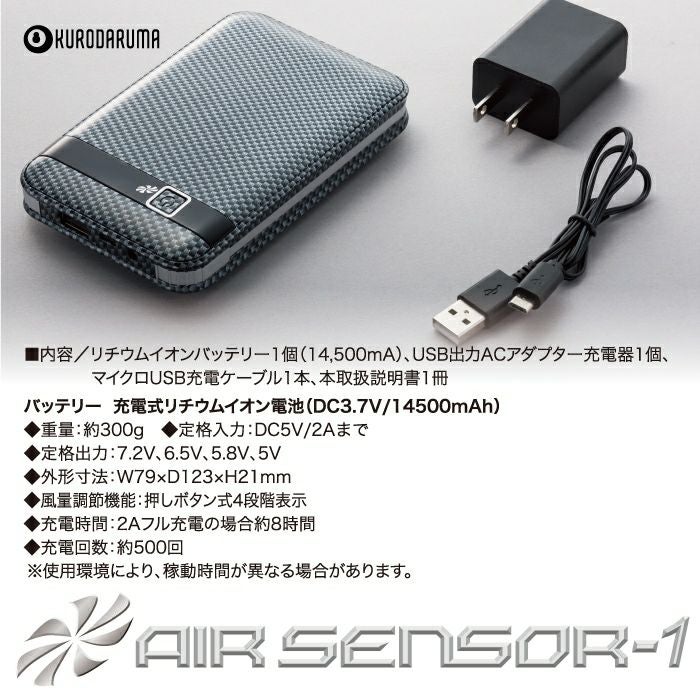 作業着 作業着 電動ファン 熱中症 クロダルマ エアーセンサー KS-12 バッテリーセット 充電器付 熱中症対策 ファン付きウェア 株式会社空調服製品とは互換性なし