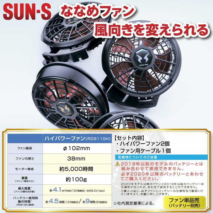 空調服 サンエス 作業服 作業着 サンエス 作業服 RD9110H ハイパワーファンセット F ファン付きウェア 作業着