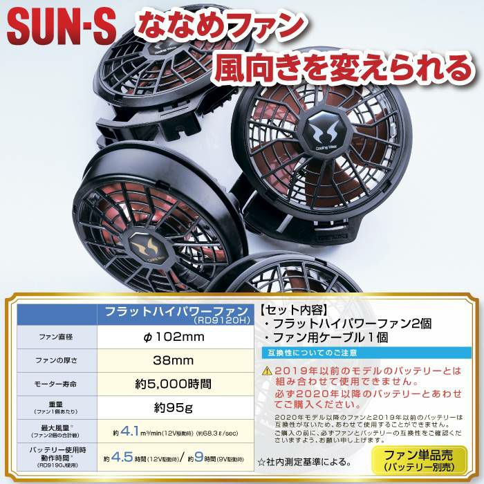 空調服 サンエス 作業服 作業着 サンエス 作業服 RD9120H フラットハイパワーファンセット F ファン付きウェア 作業着