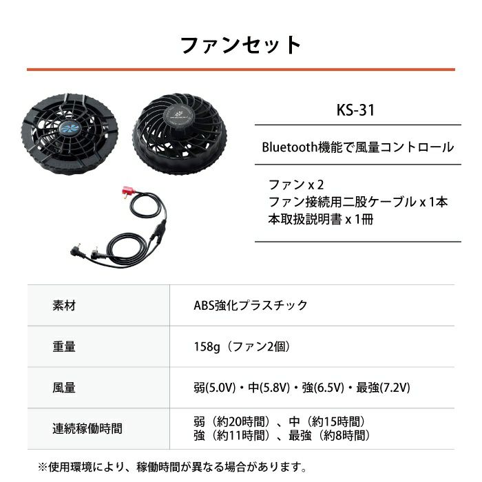 作業着 空調服 電動ファン 熱中症 クロダルマ 作業服 KS-31 空調ファンセット F ファン付きウェア