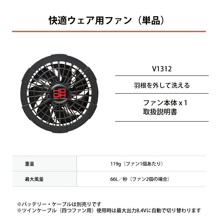 空調服 村上被服 HOOH 鳳凰 作業服 作業着 村上被服 HOOH 鳳凰 作業服 V1312 快適ウェア用ファン(単品) F ファン対応ウェア