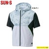 ●関連商品※KU92150フード付き半袖ブルゾン●春夏用●素材:ポリエステル100%、表(プリント生地、黒生地部分)タフタ、表2(白生地部分)ドビー、ファスナー/フロント:コイル(引き手金具)ファスナー/両脇ポケット:コイル(引き手金具・樹脂)●蛍光のファスナーテープ、腕や肩がもたつかないベストタイプ、風気路メッシュ、反射パイピング、保冷剤メッシュポケット、裾アジャスターゴム、両脇カラーファスナーポケット(ケーブルホール付)、シリコンネーム●サイズ:M、L、LL、3L、4L、5L●カラー:ネイビー、ブルー、シルバー