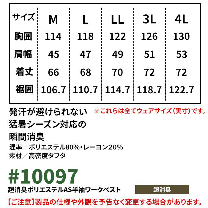 空調服 アイズフロンティア 作業服 作業着 ファン付きウェア (服のみ) アイズフロンティア 作業服 作業着 10097 超消臭ポリエステルAS半袖ワークベスト M-4L 春夏用