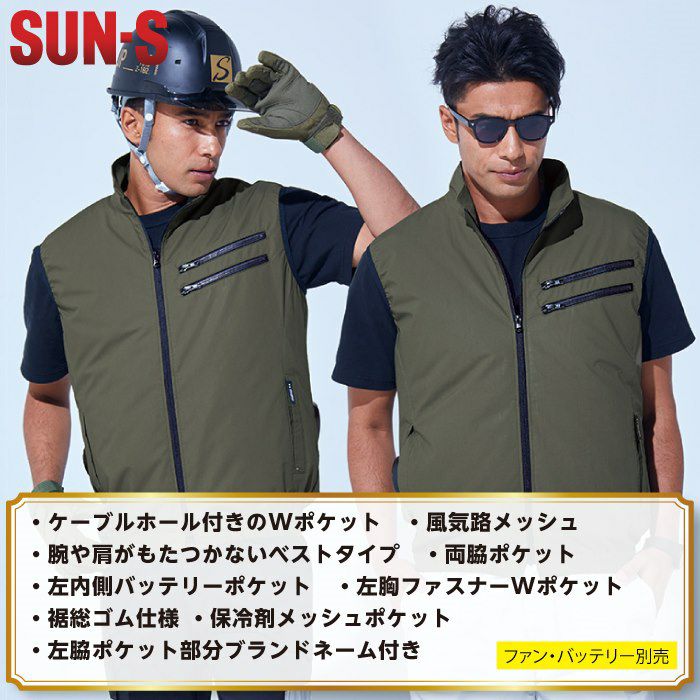 空調服 サンエス 作業服 作業着 サンエス 作業服 KU99130 エアクールベスト(保冷剤3個付き) F ファン付きウェア 春夏 作業着