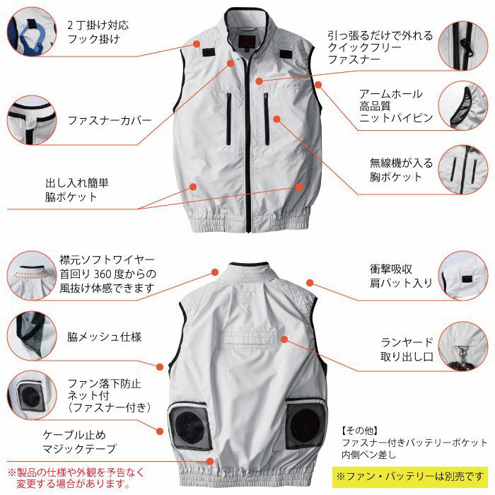 空調服 サンエス 作業服 作業着 ファン付きウェア (服のみ) 春夏 風神服 サンエス 作業服 KU92102 ベスト M-5L 作業着