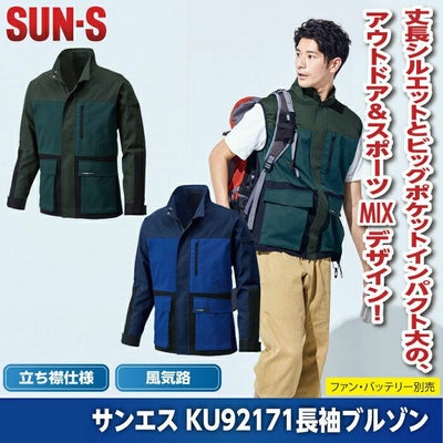 空調服 サンエス 作業服 作業着 ファン付きウェア (服のみ) 春夏 風神服 サンエス 作業服 KU92171 長袖ブルゾン M-5L 作業着