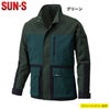 ●関連商品※KU92170半袖ブルゾン※KU92172ベスト●春夏用●素材:ポリエステル75%・綿25%(ブロード)ファスナー/フロント、胸ポケット:コイル(引き手金具)ボタン/プラスチック●風気路メッシュ、両脇ケーブルホール、保冷剤メッシュポケット、消臭テープ、織りネーム、左袖ペン差し、二重裾、左袖マジックテープ、空気を漏らさない二重裾仕様、用途に応じて使える二重脇ポケット、立ち襟仕様で首もCOOL●サイズ:M、L、LL、3L、4L、5L●カラー:ネイビー、グリーン