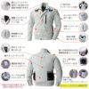 フルハーネス対応。安全性と快適さを両立させた多機能タイプ。ポリエステル素材の裏側にチタンコーティングしたことで、平均でマイナス2度体感を実現。作業中の体温上昇を抑える効果があり、無駄な汗をかくことなく体力消耗を減らします。