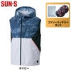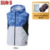 ●関連商品※KU92150フード付き半袖ブルゾン●春夏用●素材:ポリエステル100%、表(プリント生地、黒生地部分)タフタ、表2(白生地部分)ドビー、ファスナー/フロント:コイル(引き手金具)ファスナー/両脇ポケット:コイル(引き手金具・樹脂)●蛍光のファスナーテープ、腕や肩がもたつかないベストタイプ、風気路メッシュ、反射パイピング、保冷剤メッシュポケット、裾アジャスターゴム、両脇カラーファスナーポケット(ケーブルホール付)、シリコンネーム●サイズ:M、L、LL、3L、4L、5L●カラー:ネイビー、ブルー、シルバー
