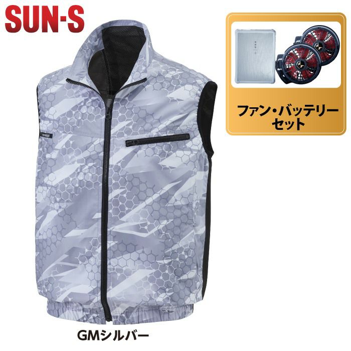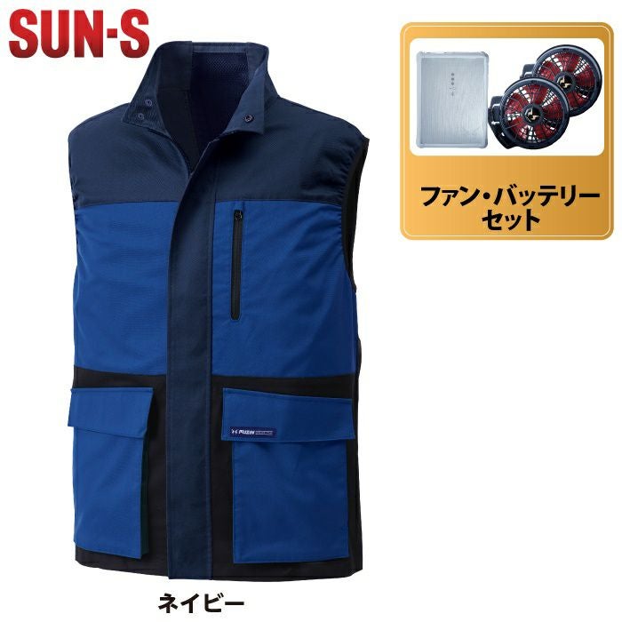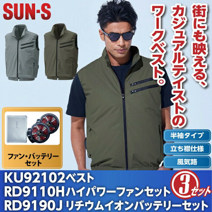 ファン対応ウェア 春夏用 サンエス KU92102setR3 ベスト ファンとバッテリセット M-5L
