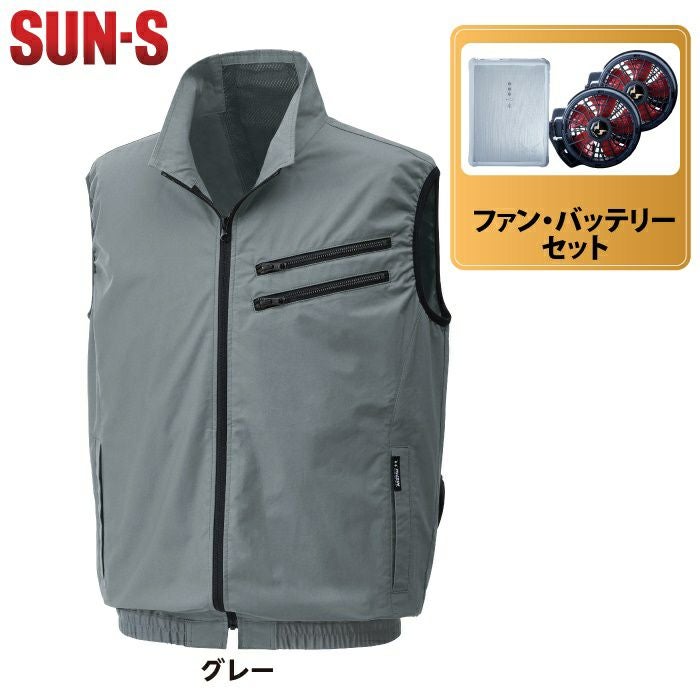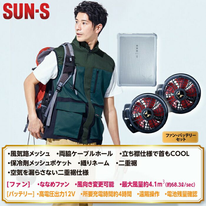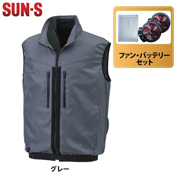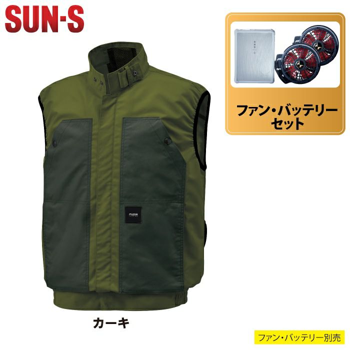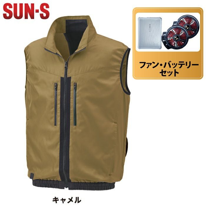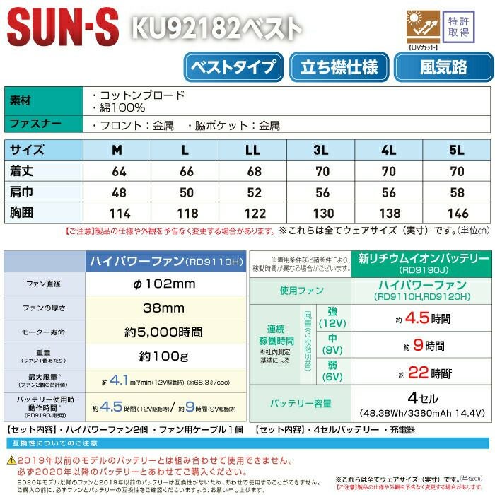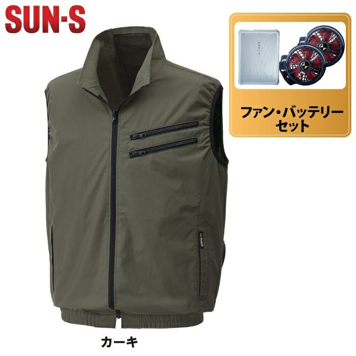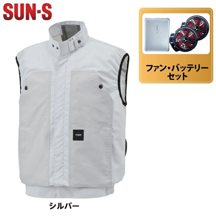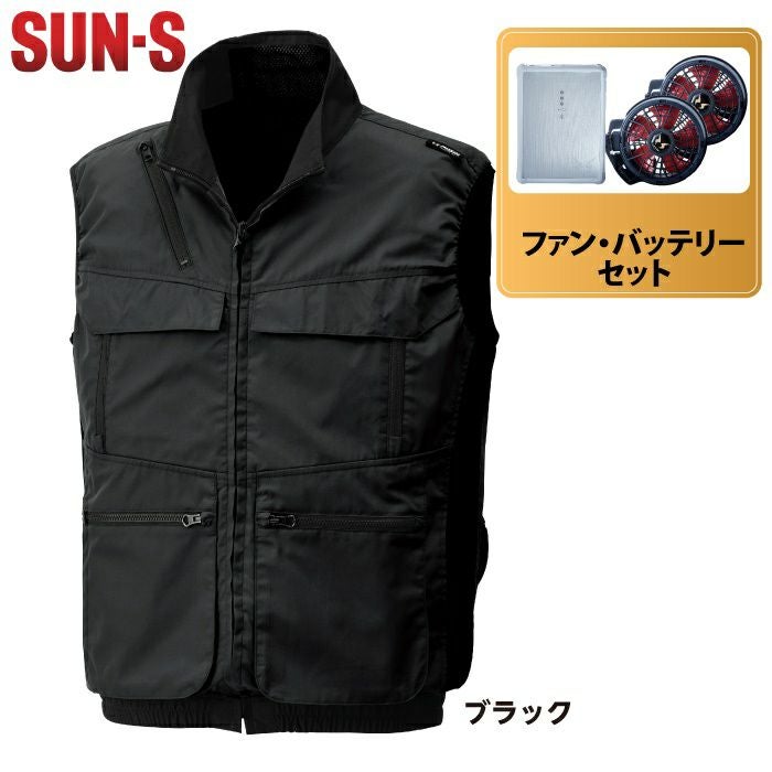ファン対応ウェア 春夏用 サンエス KU92182setR3 ベスト ファンとバッテリセット M-5L