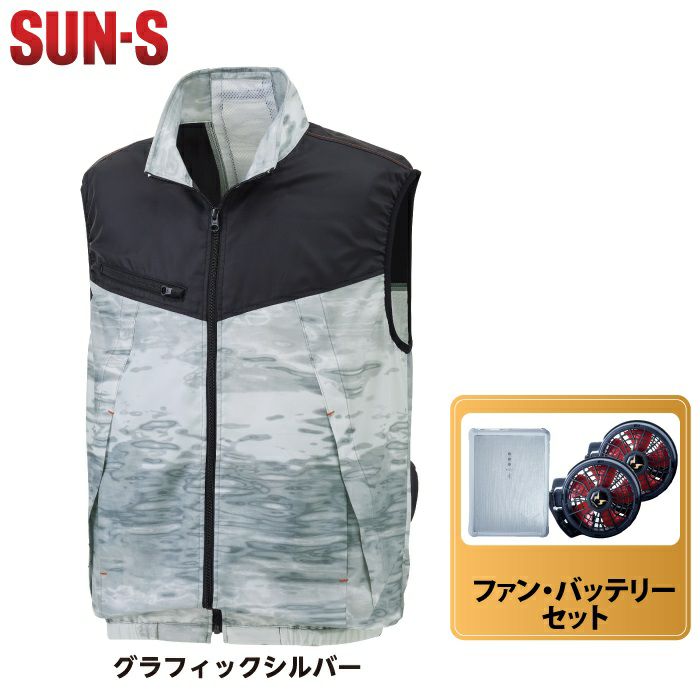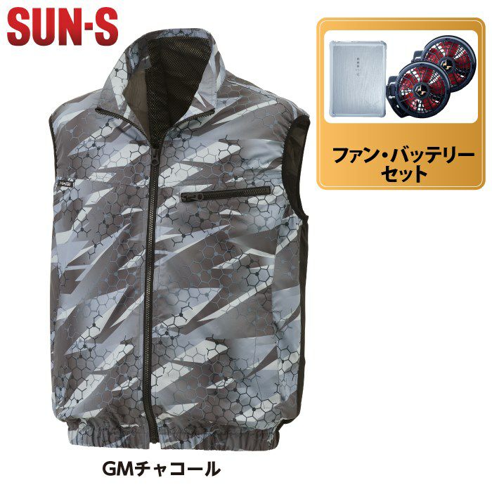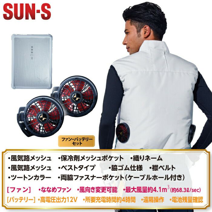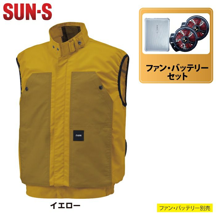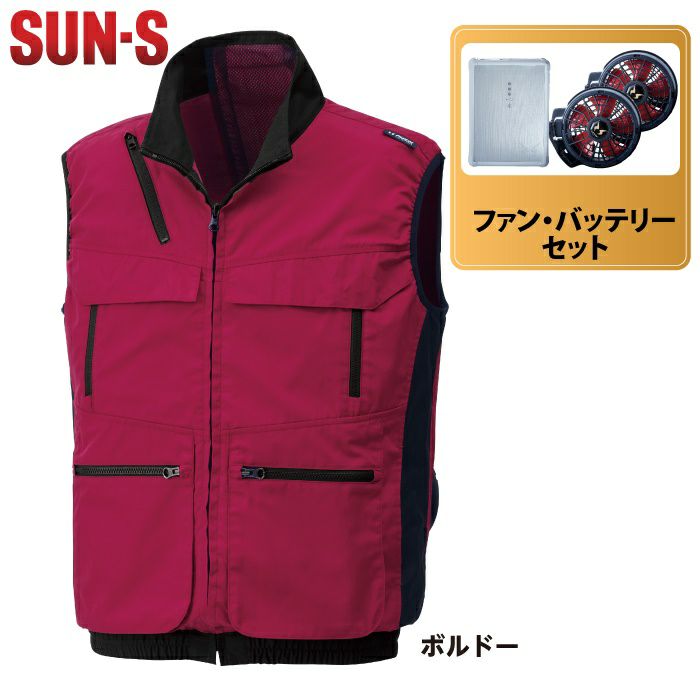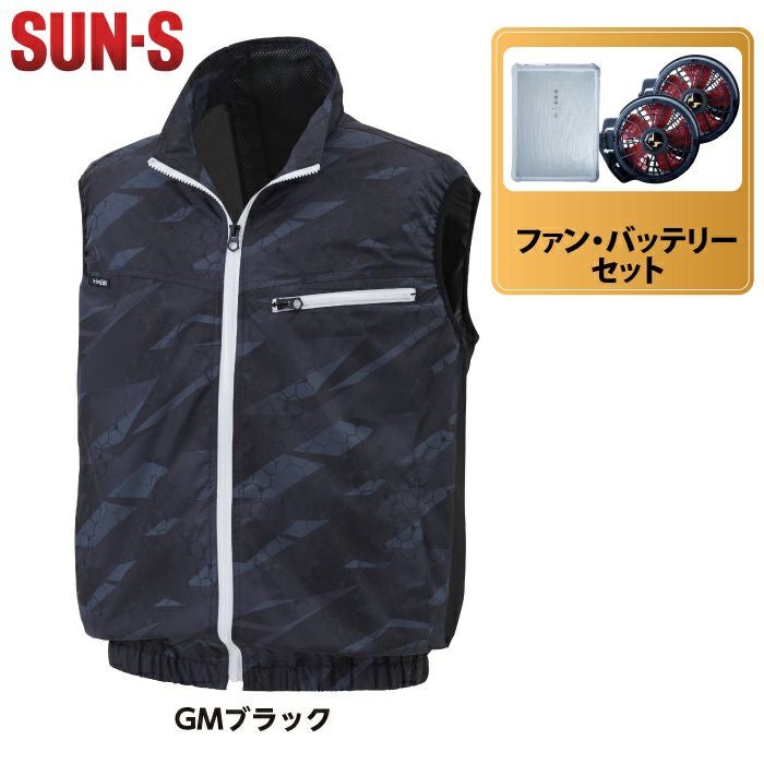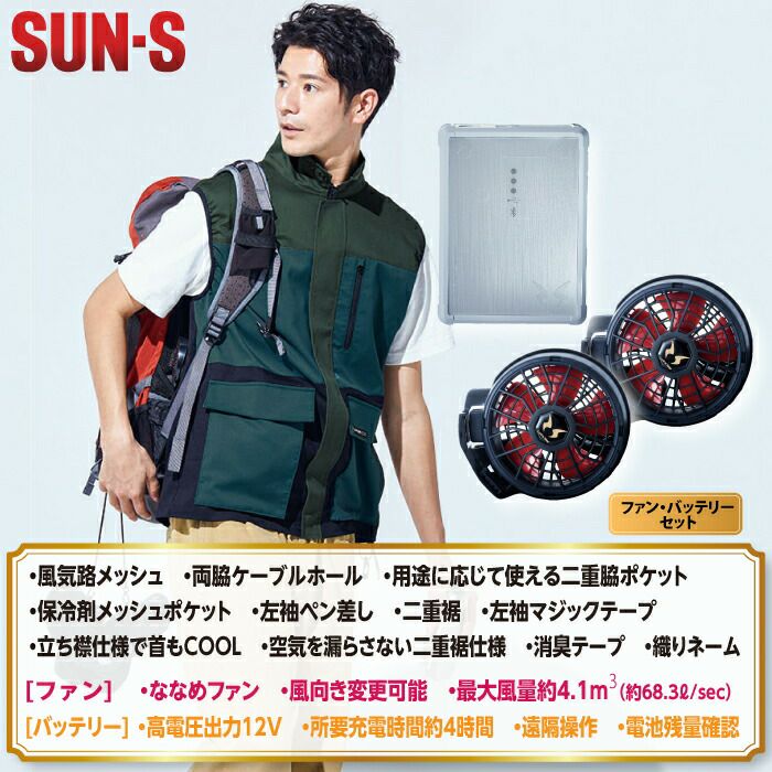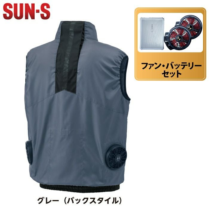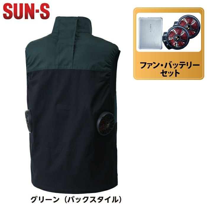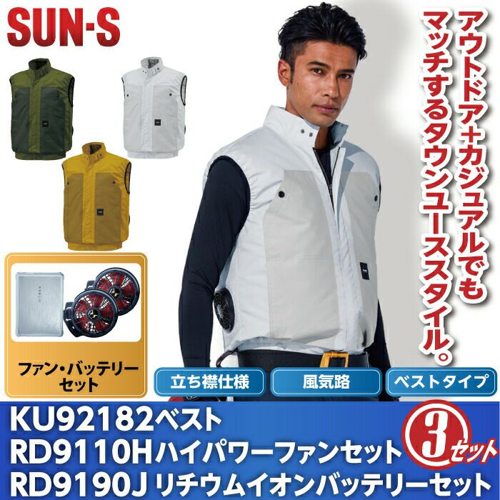 ファン対応ウェア 春夏用 サンエス KU92182setR3 ベスト ファンとバッテリセット M-5L