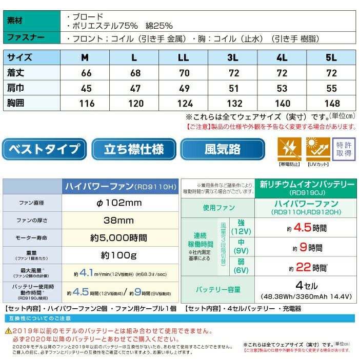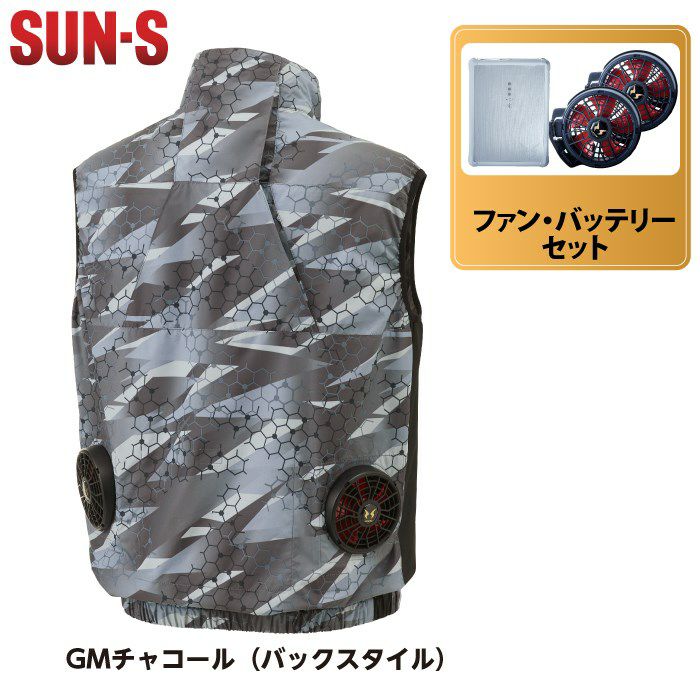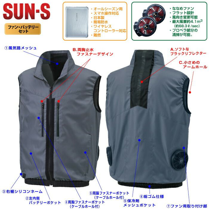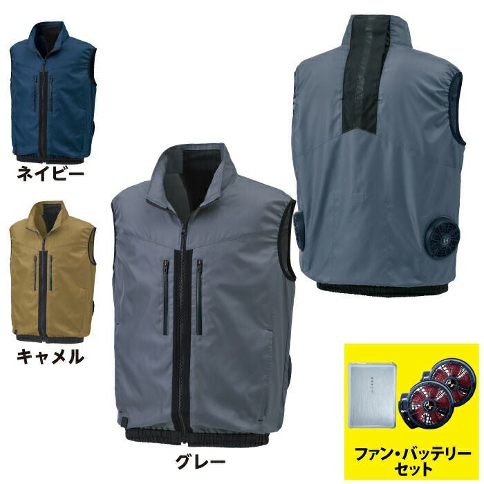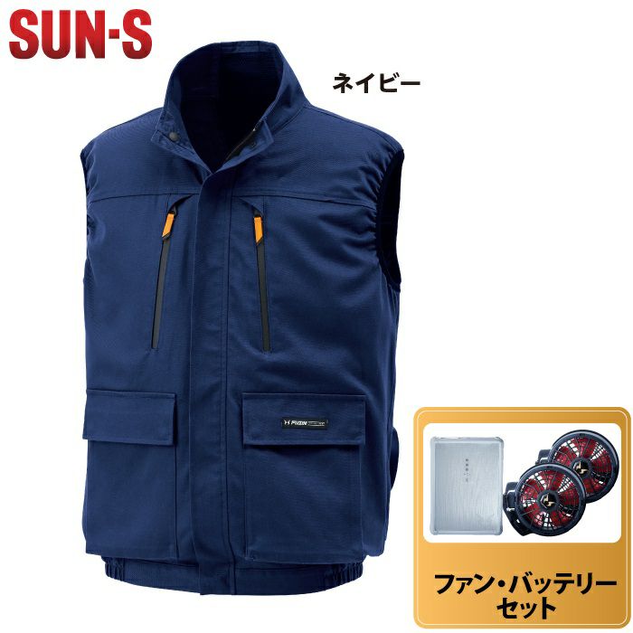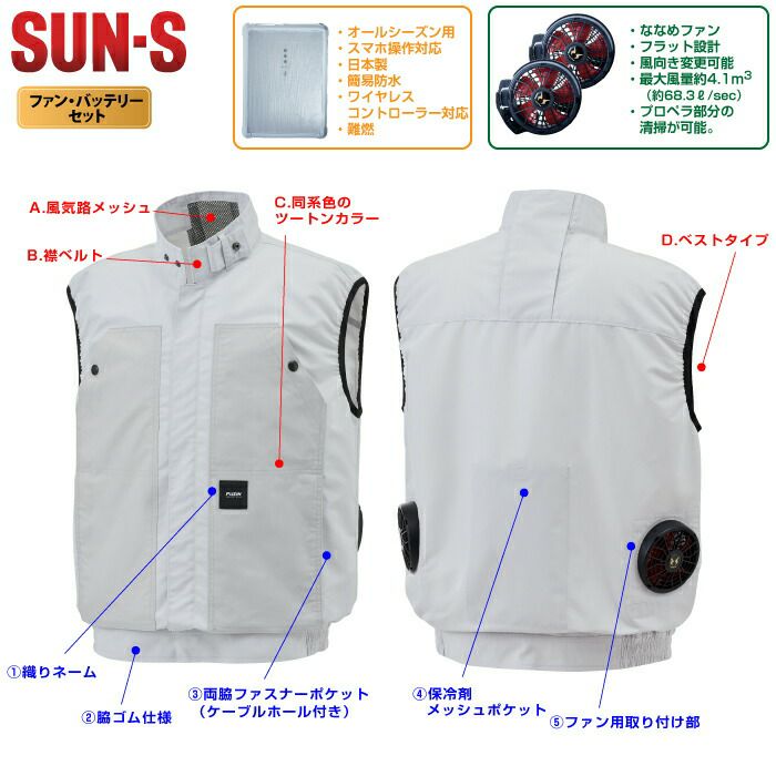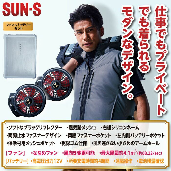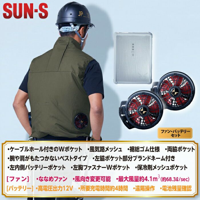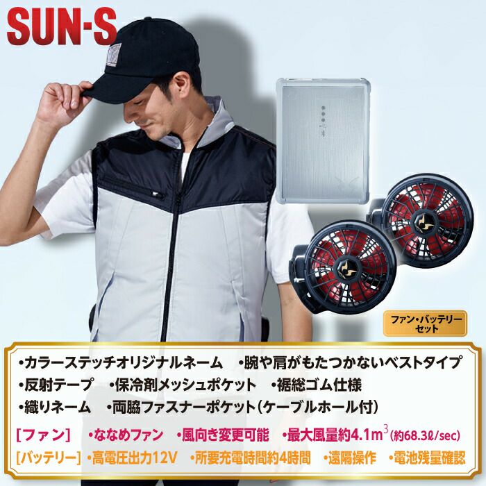 ファン対応ウェア 春夏用 サンエス KU92182setR3 ベスト ファンとバッテリセット M-5L