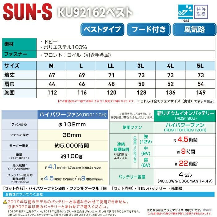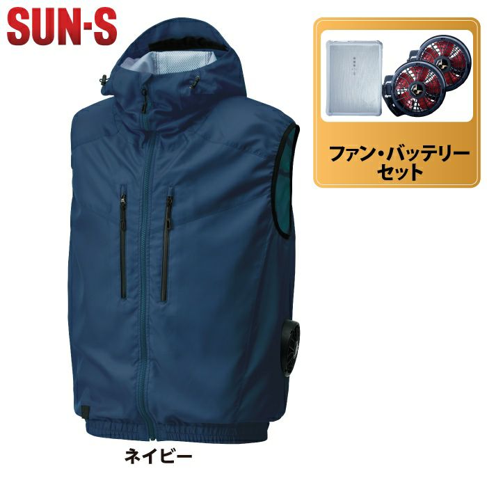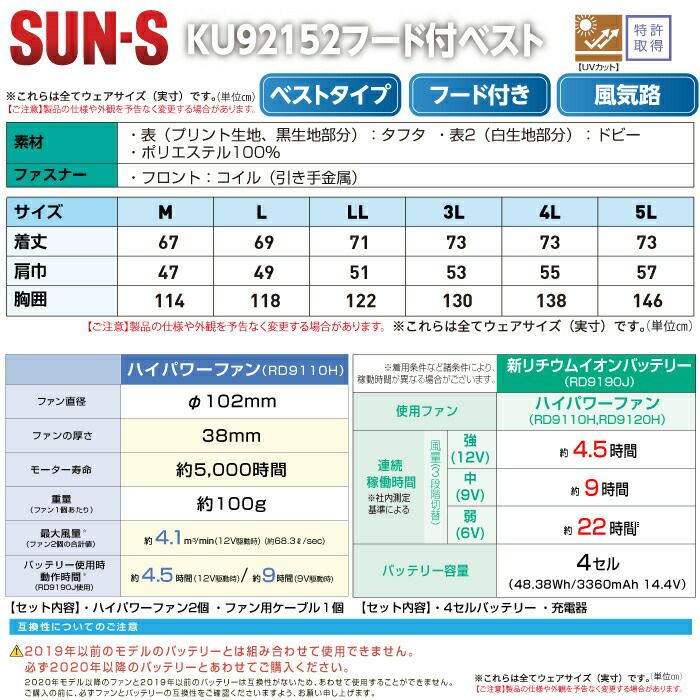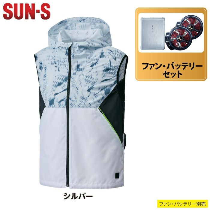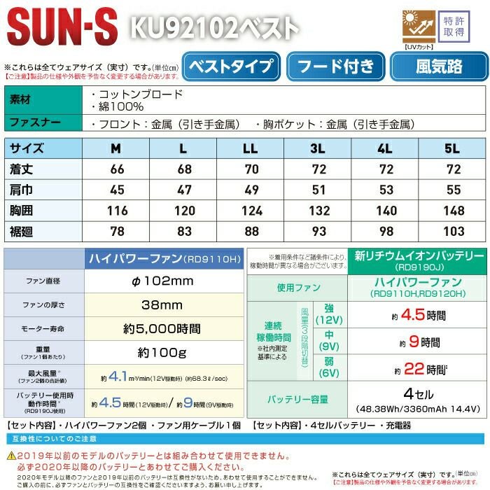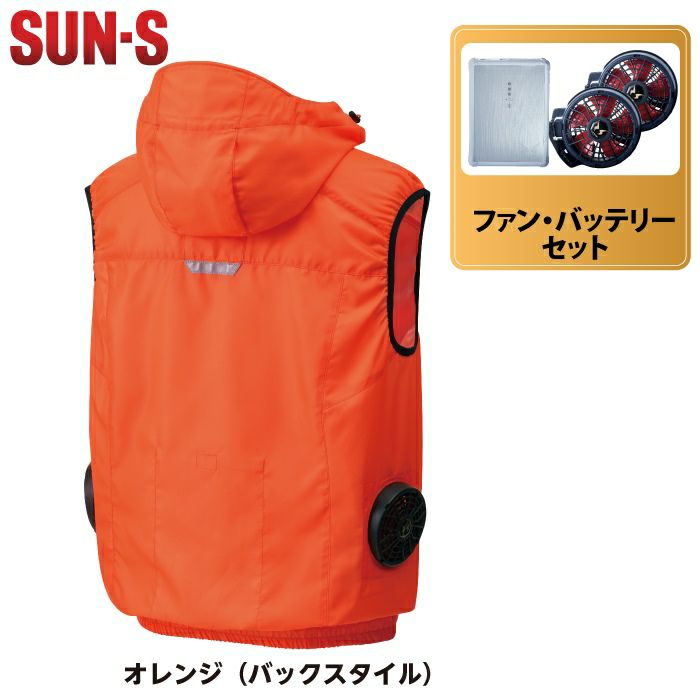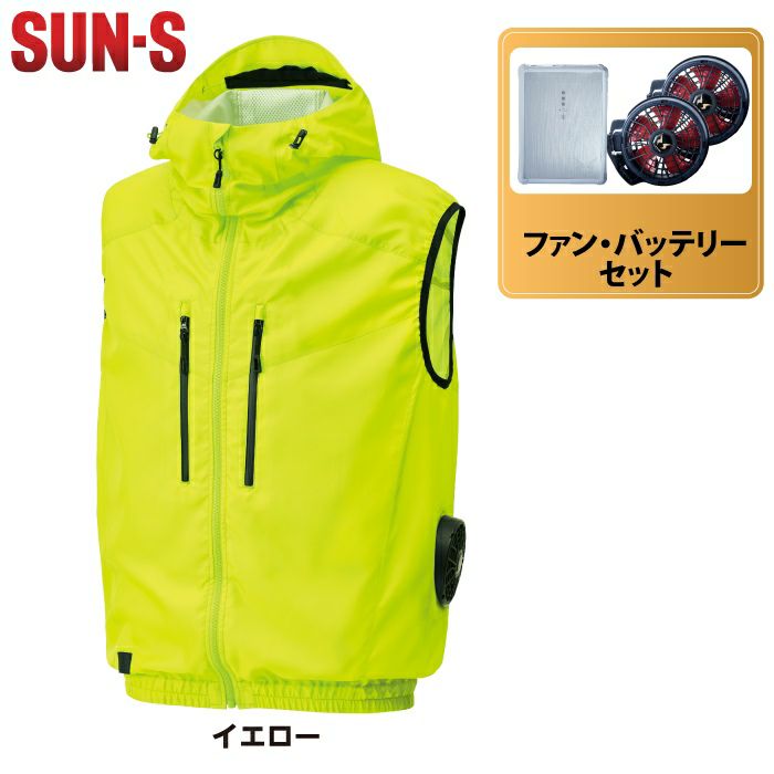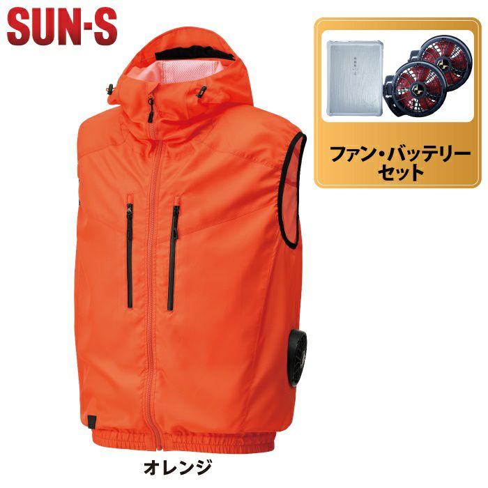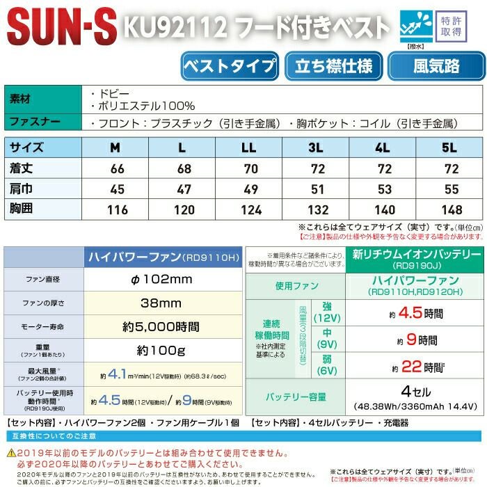 ファン対応ウェア 春夏用 サンエス KU92112setR3 フード付きベスト ファンとバッテリセット M-5L