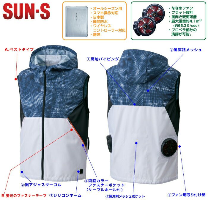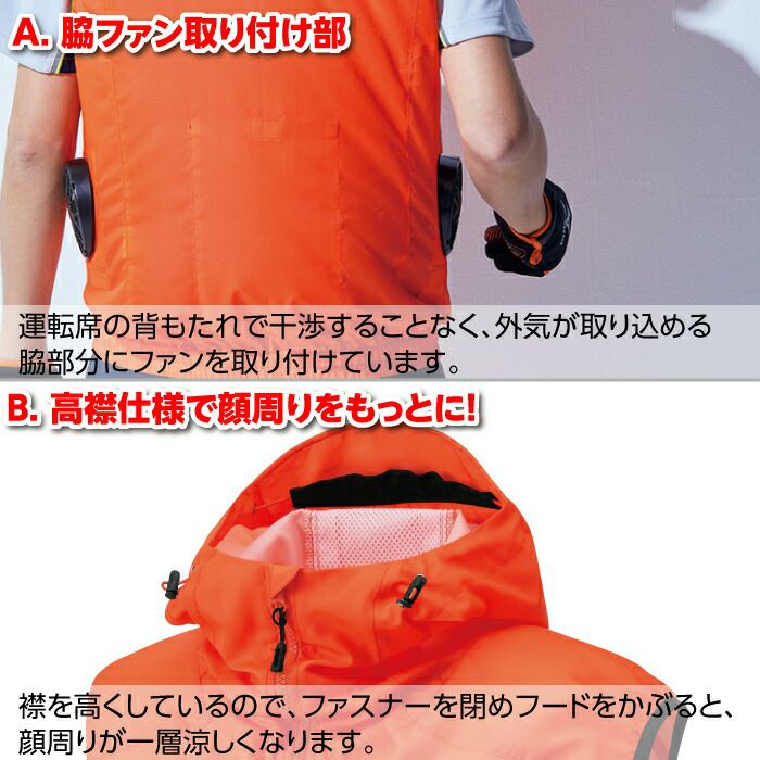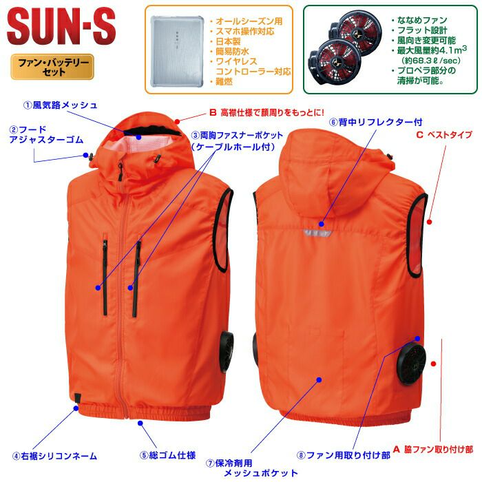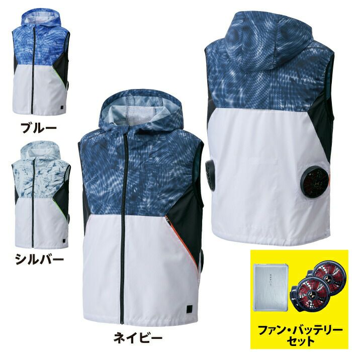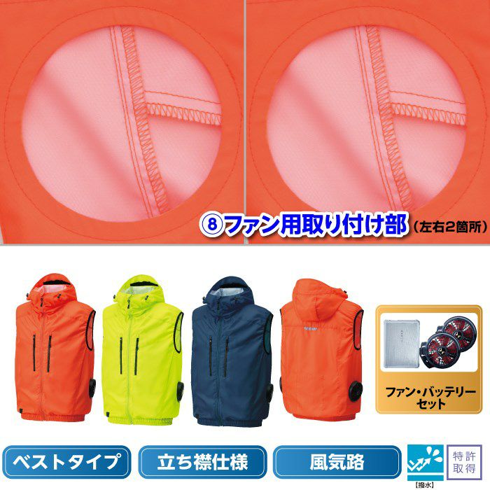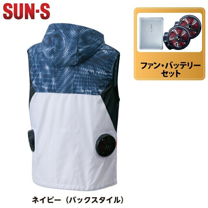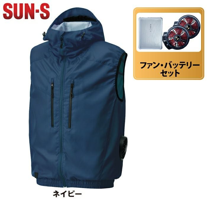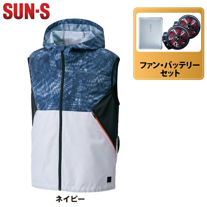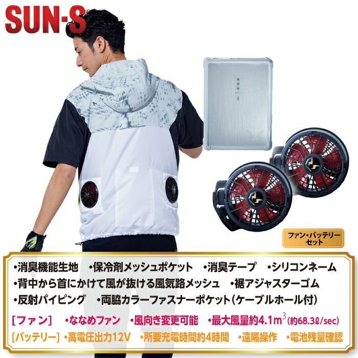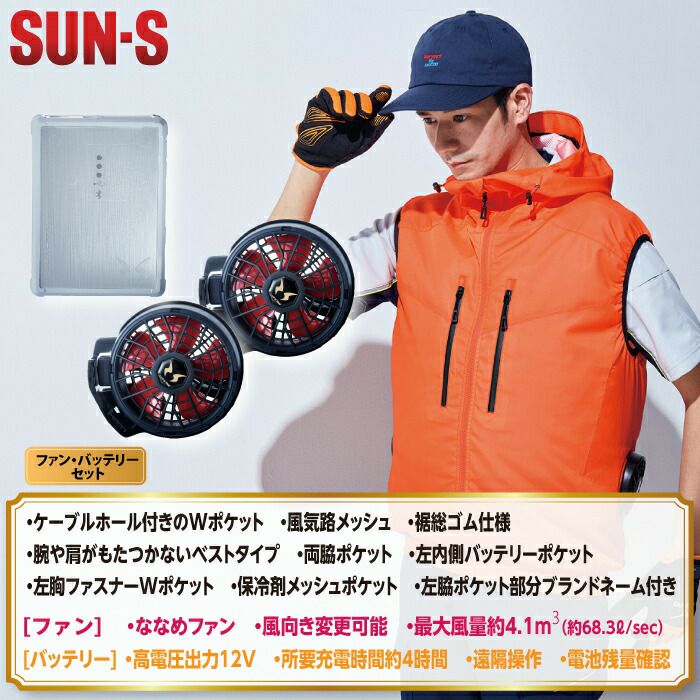 ファン対応ウェア 春夏用 サンエス KU92112setR3 フード付きベスト ファンとバッテリセット M-5L