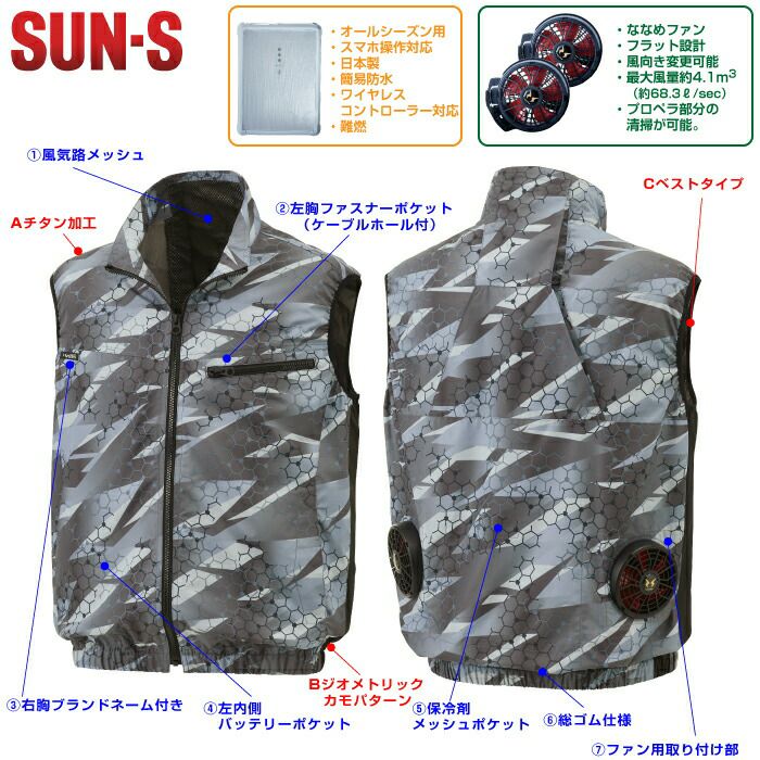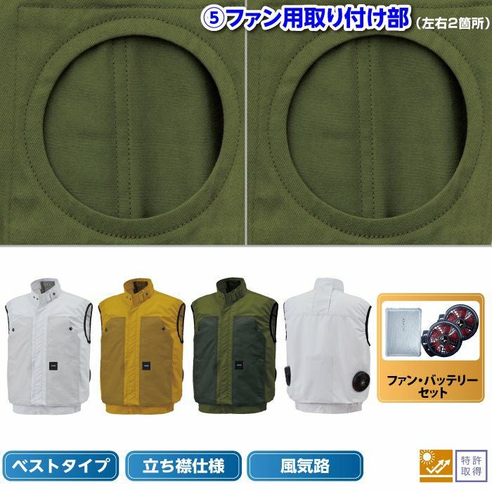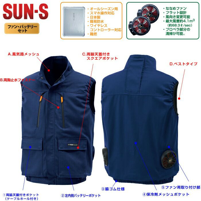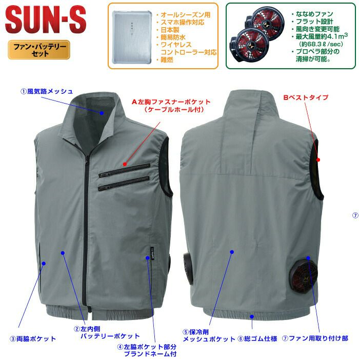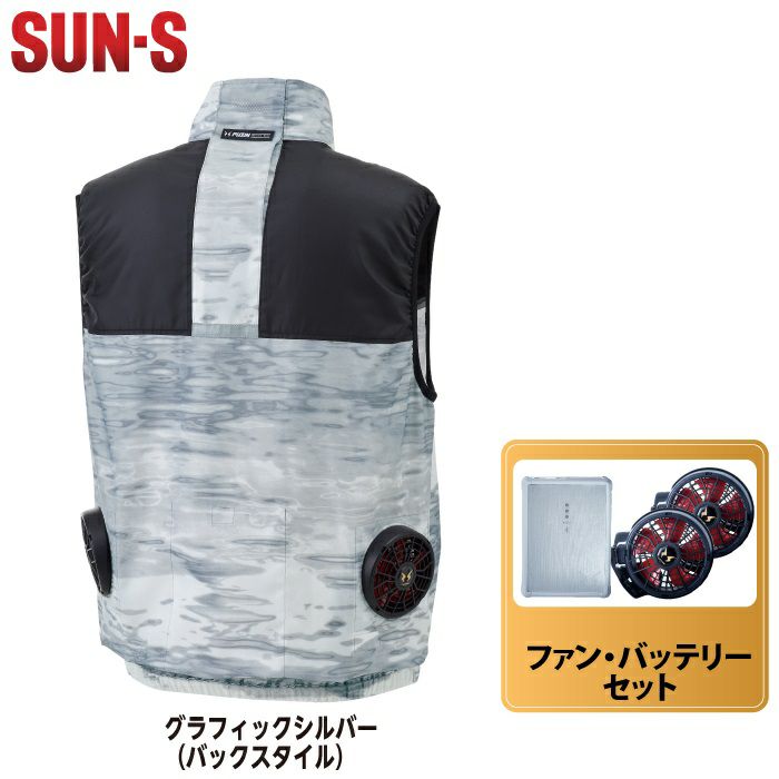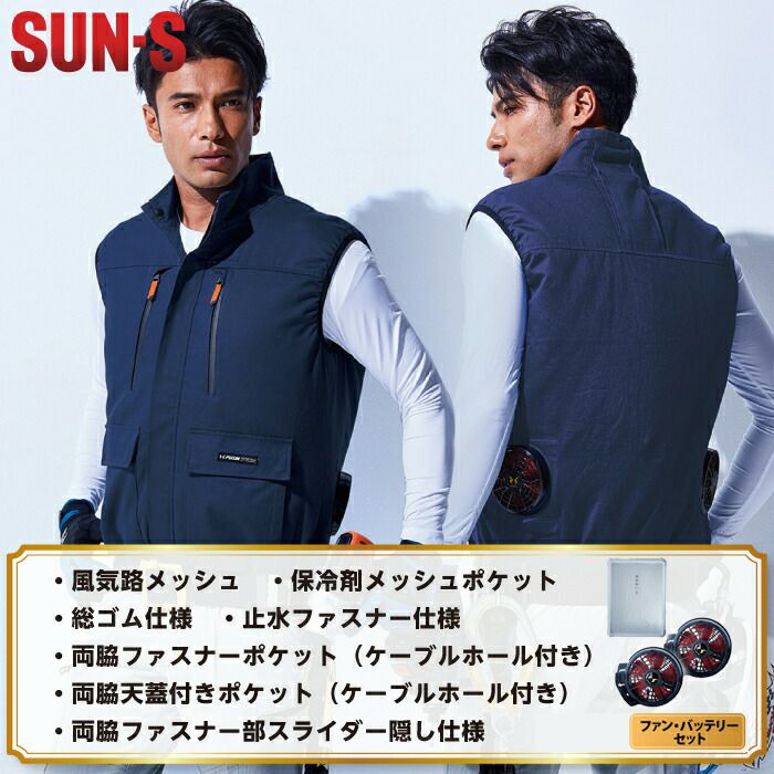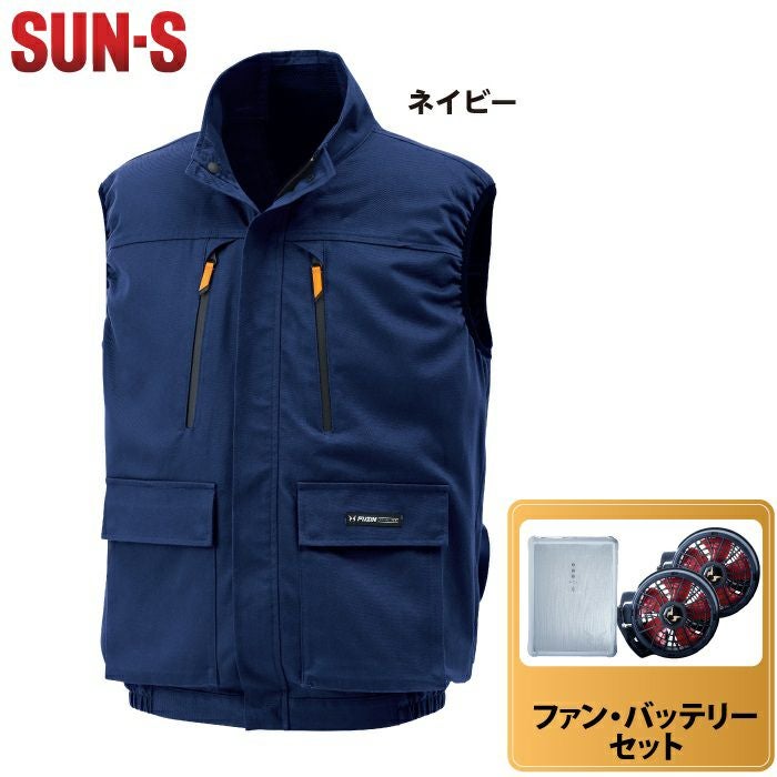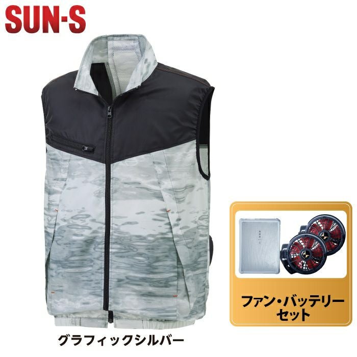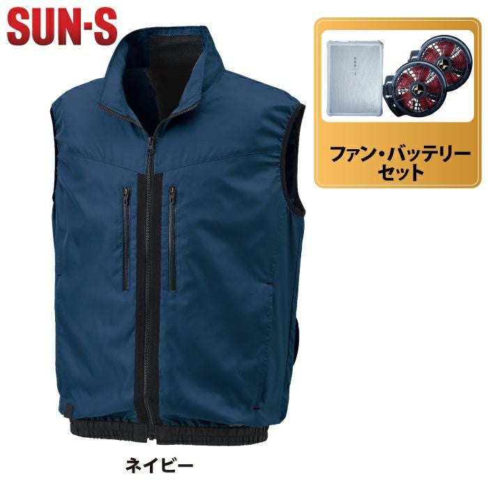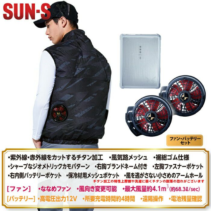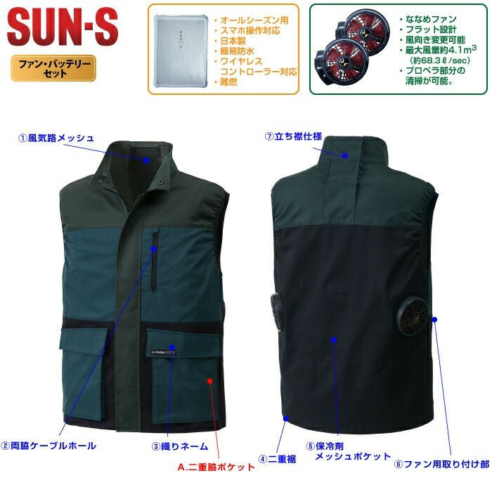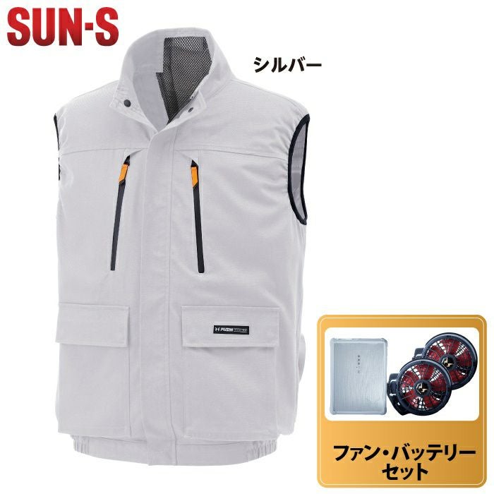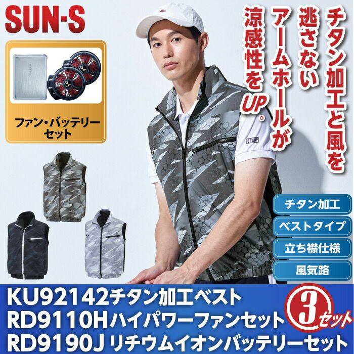 ファン対応ウェア 春夏用 サンエス KU92142setR3 チタン加工ベスト ファンとバッテリセット M-5L