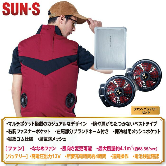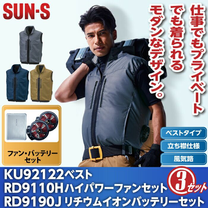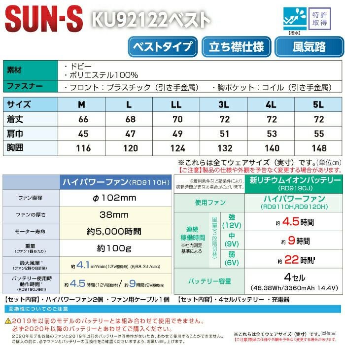 ファン対応ウェア 春夏用 サンエス KU92122setR3 ベスト ファンとバッテリセット M-5L
