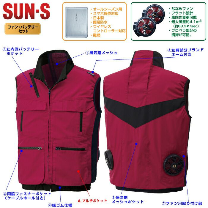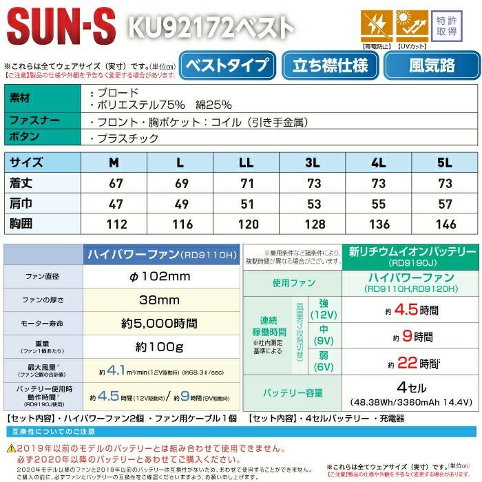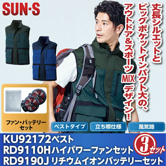 ファン対応ウェア 春夏用 サンエス KU92172setR3 ベスト ファンとバッテリセット M-5L