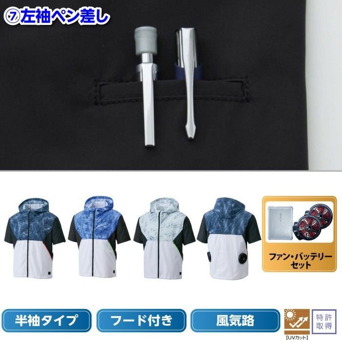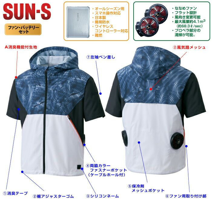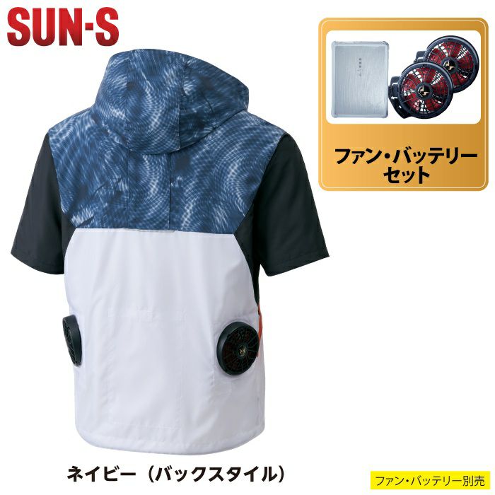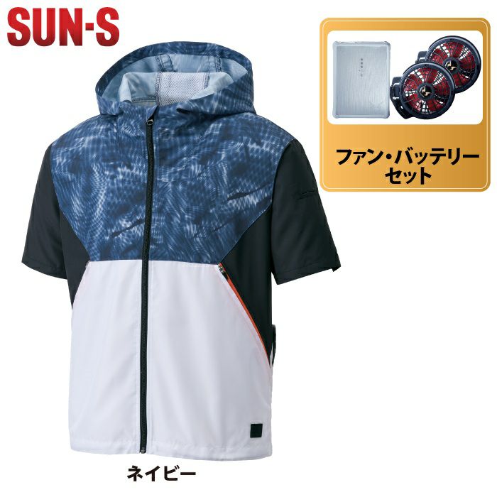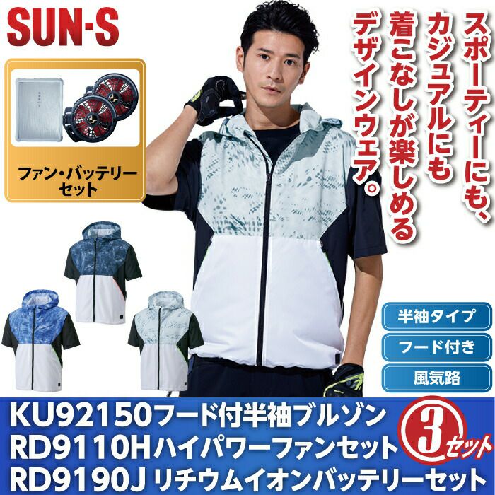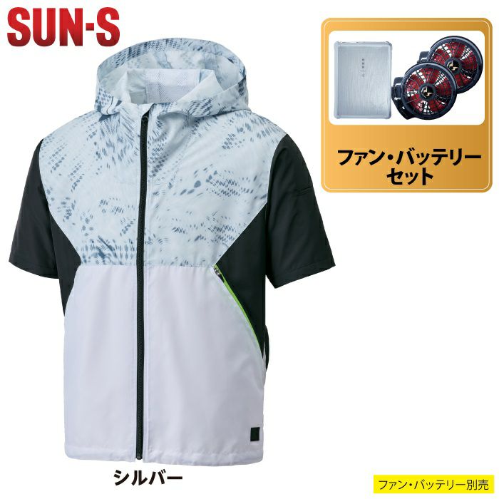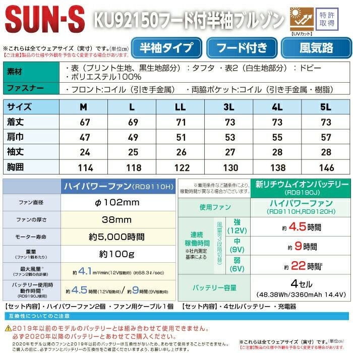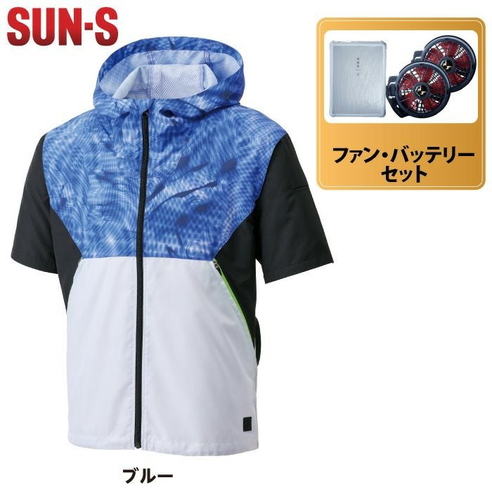 ファン対応ウェア 春夏用 サンエス KU92150setR3 フード付半袖ブルゾン ファンとバッテリセット M-5L