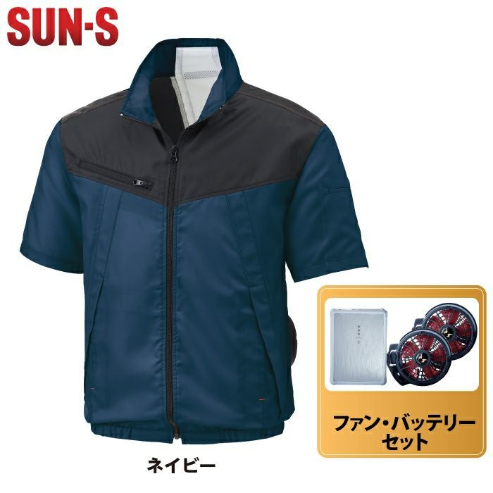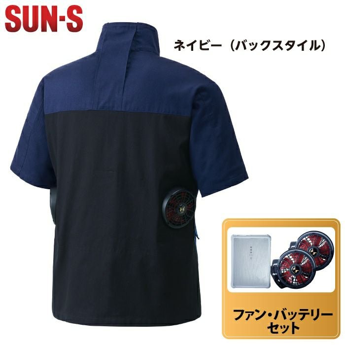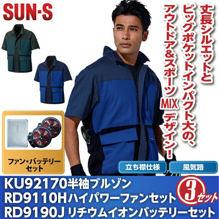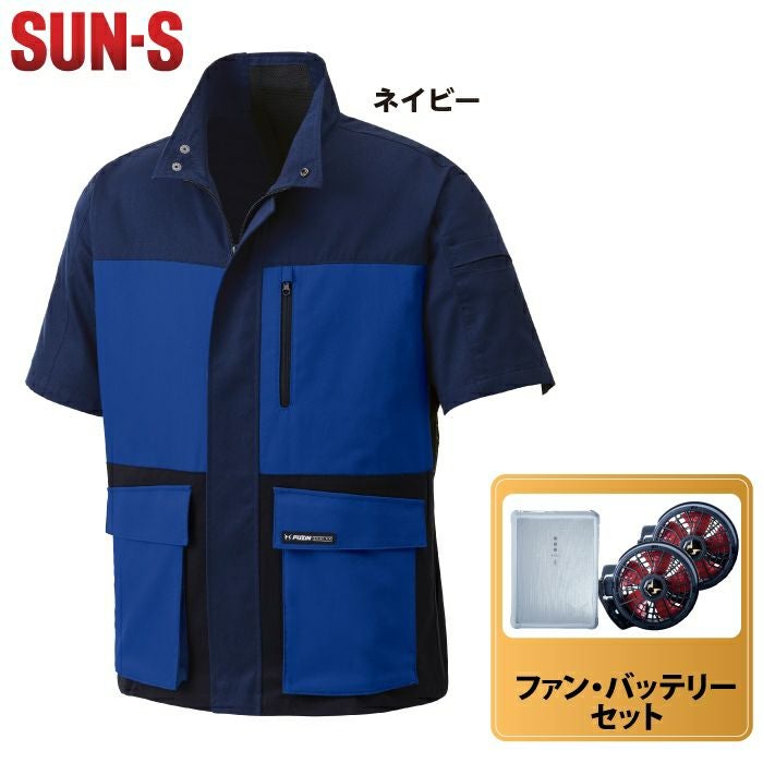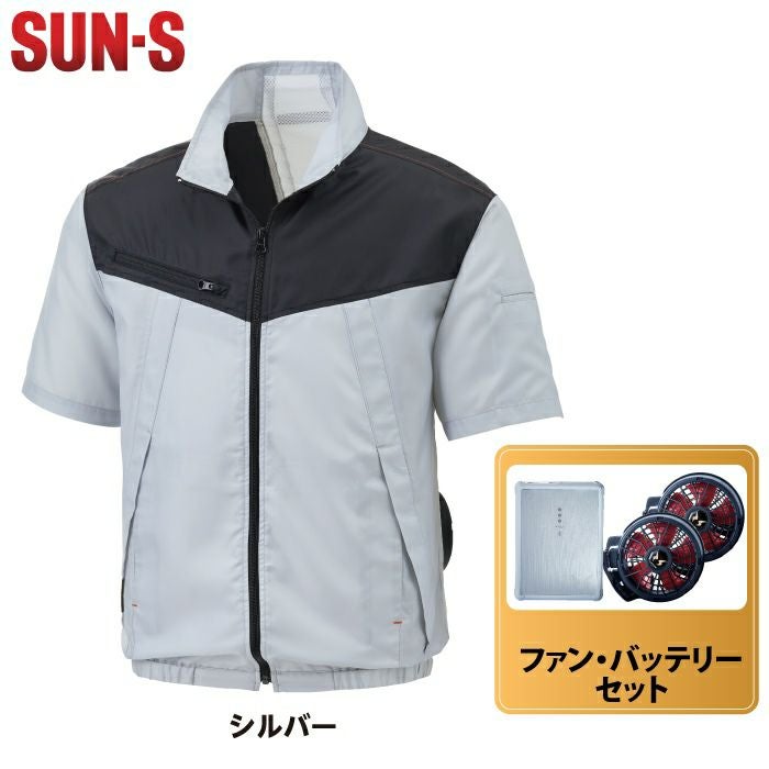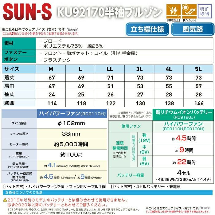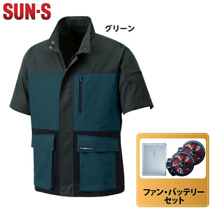 ファン対応ウェア 春夏用 サンエス KU92170setR3 半袖ブルゾン ファンとバッテリセット M-5L