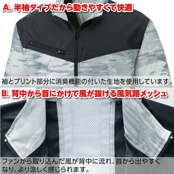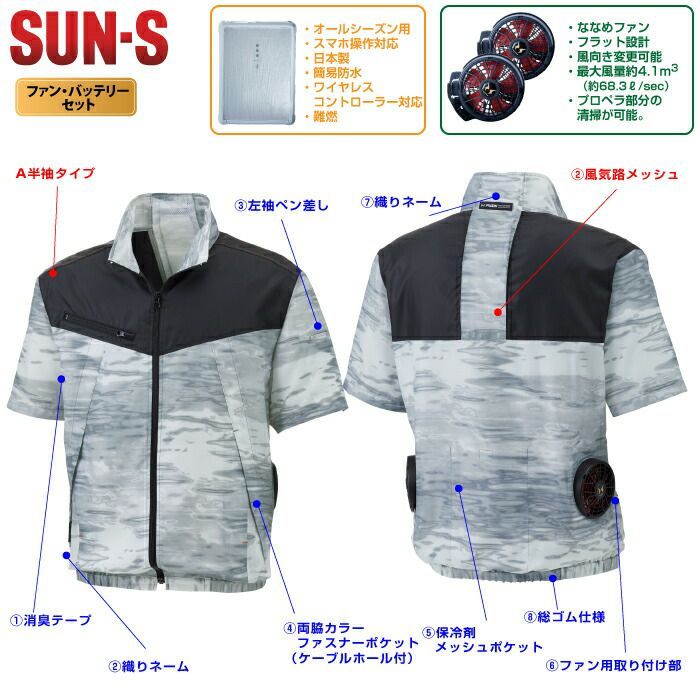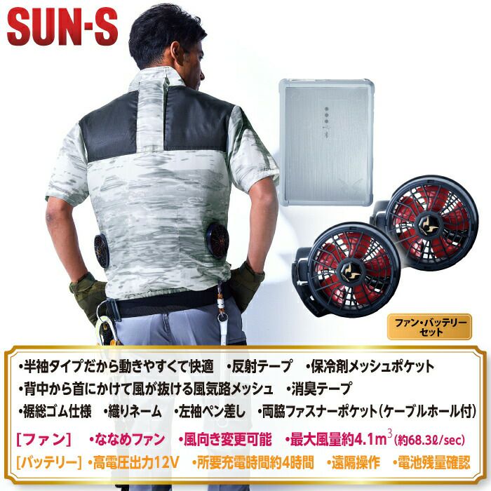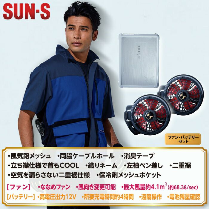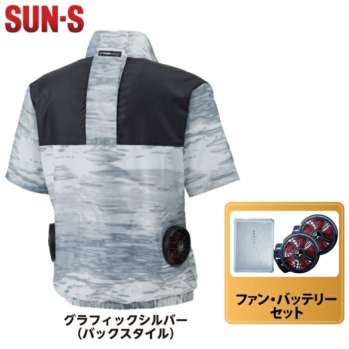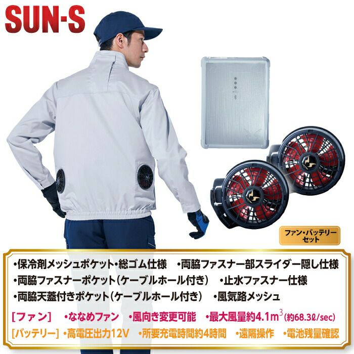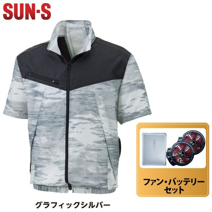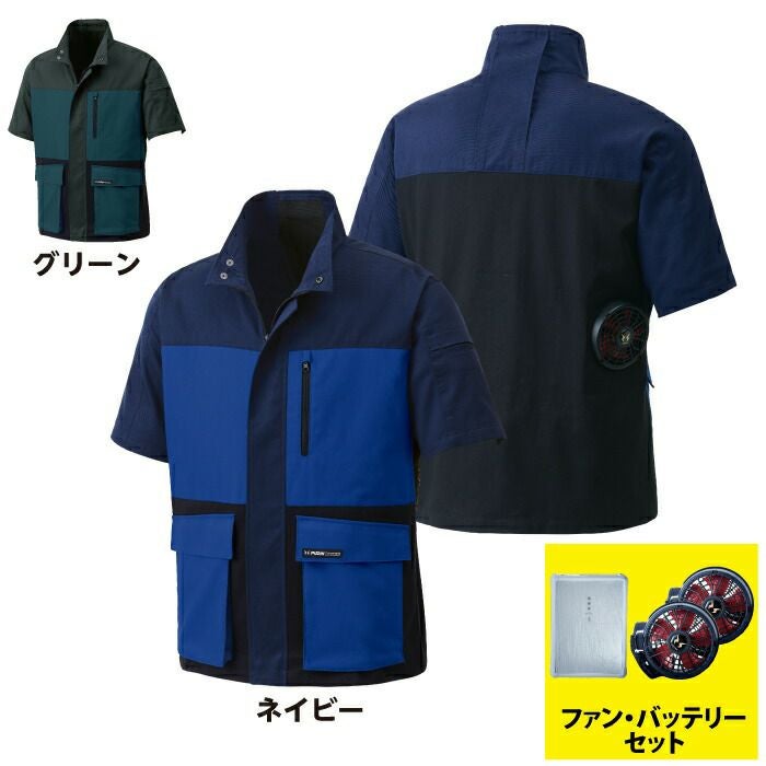 ファン対応ウェア 春夏用 サンエス KU92170setR3 半袖ブルゾン ファンとバッテリセット M-5L