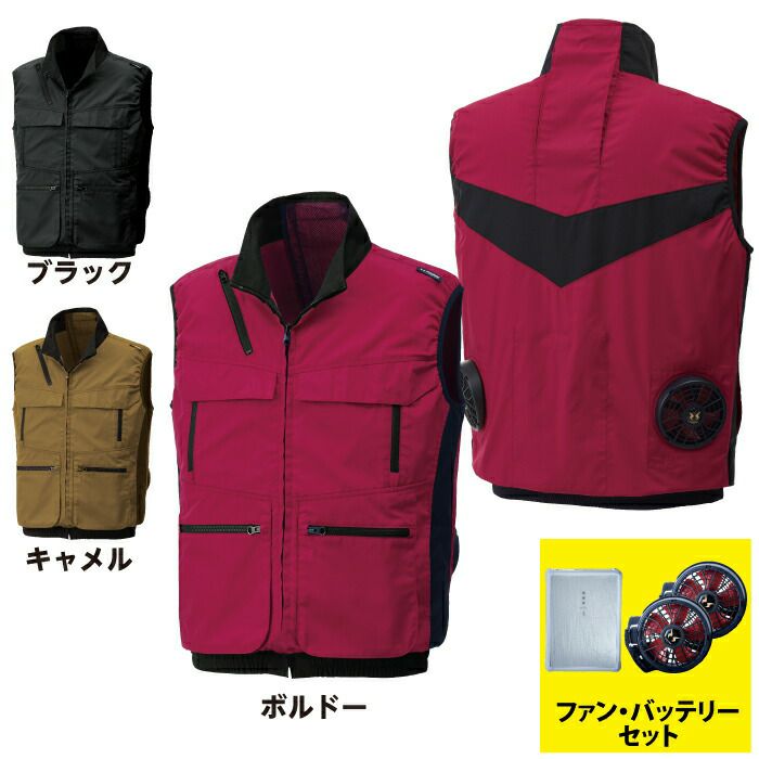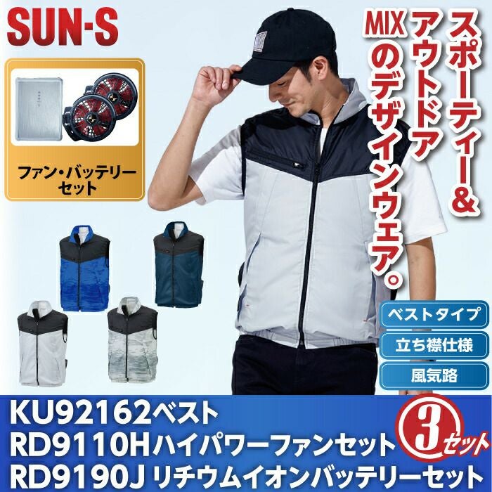 ファン対応ウェア 春夏用 サンエス KU92162setR3 ベスト ファンとバッテリセット M-5L