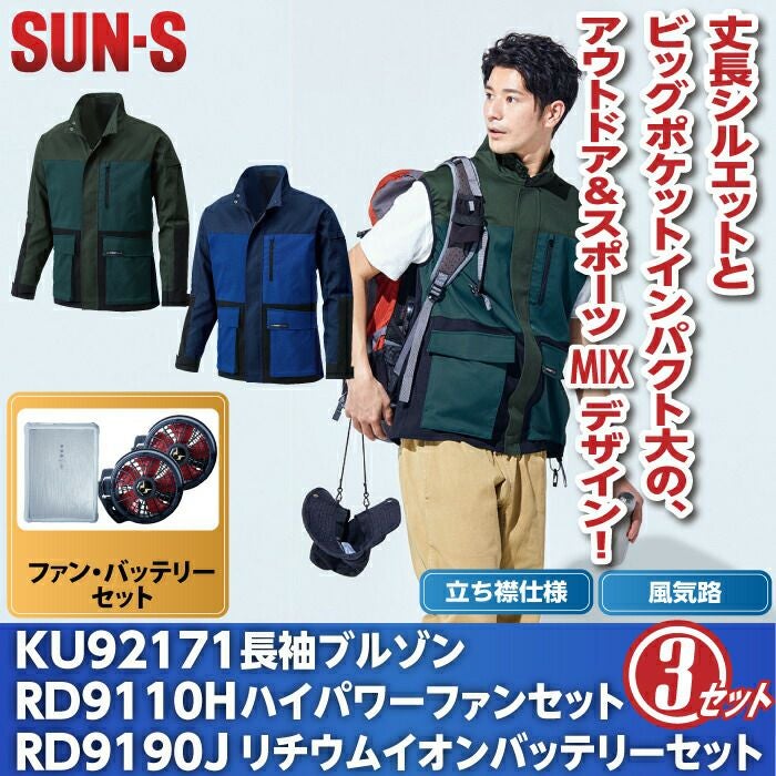 ファン対応ウェア 春夏用 サンエス KU92171setR3 長袖ブルゾン ファンとバッテリセット M-5L