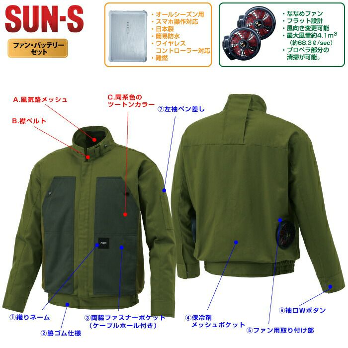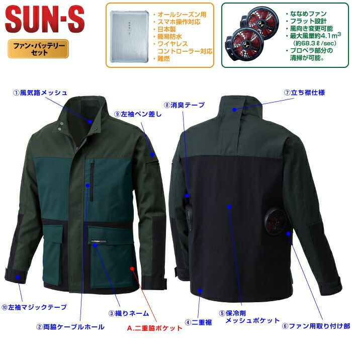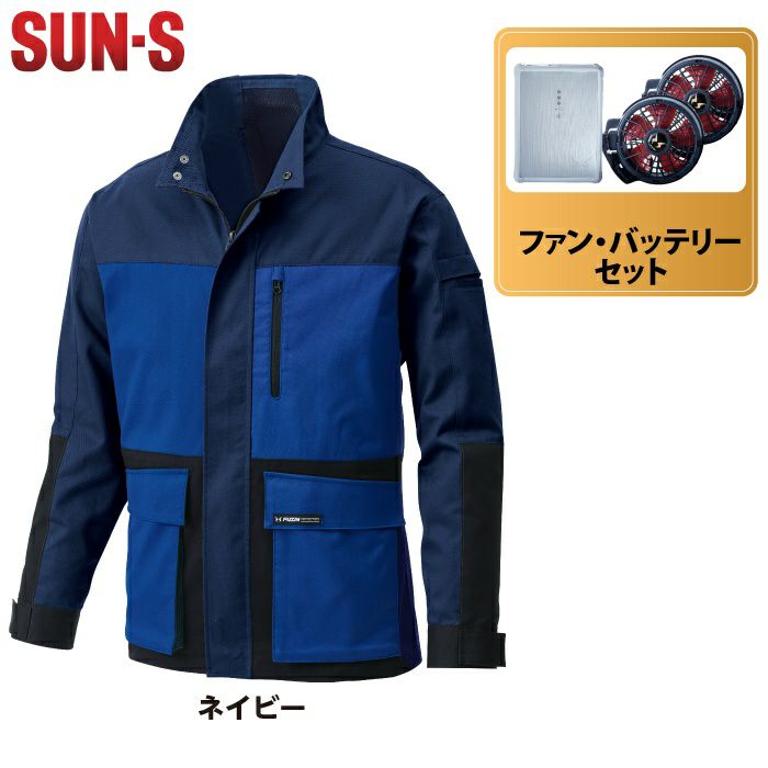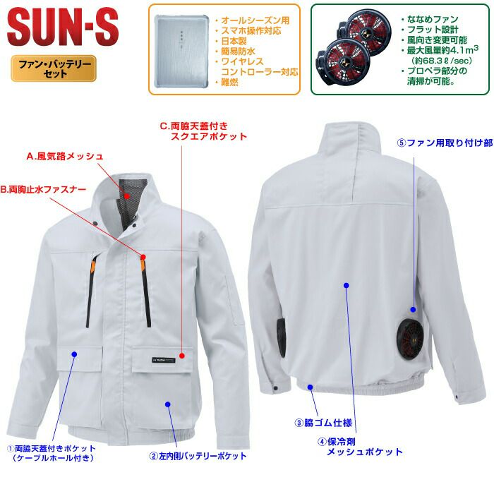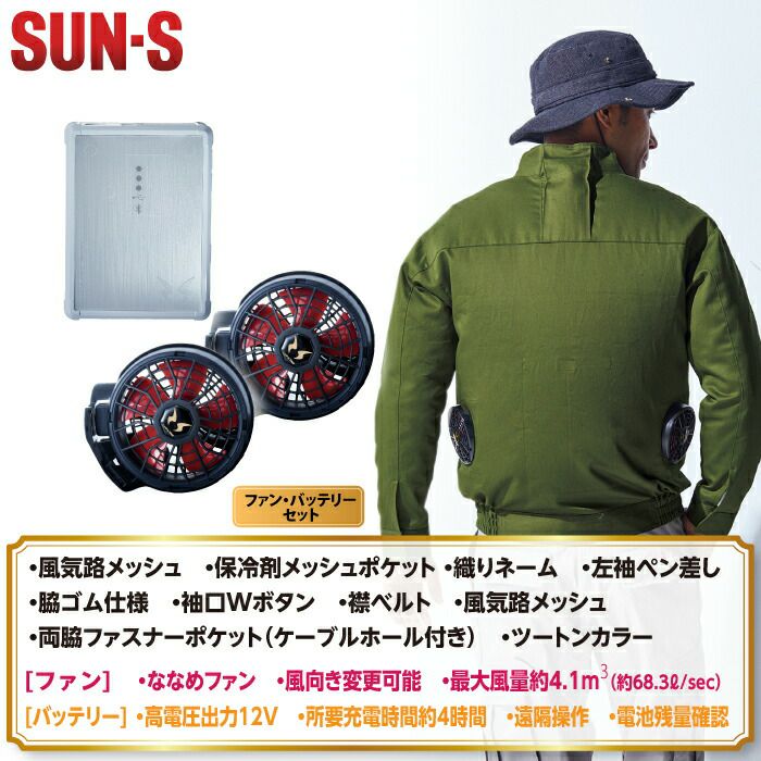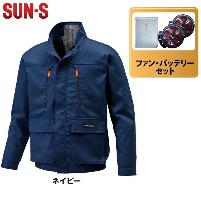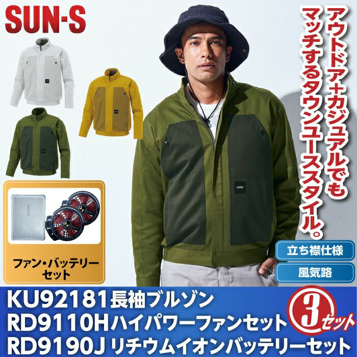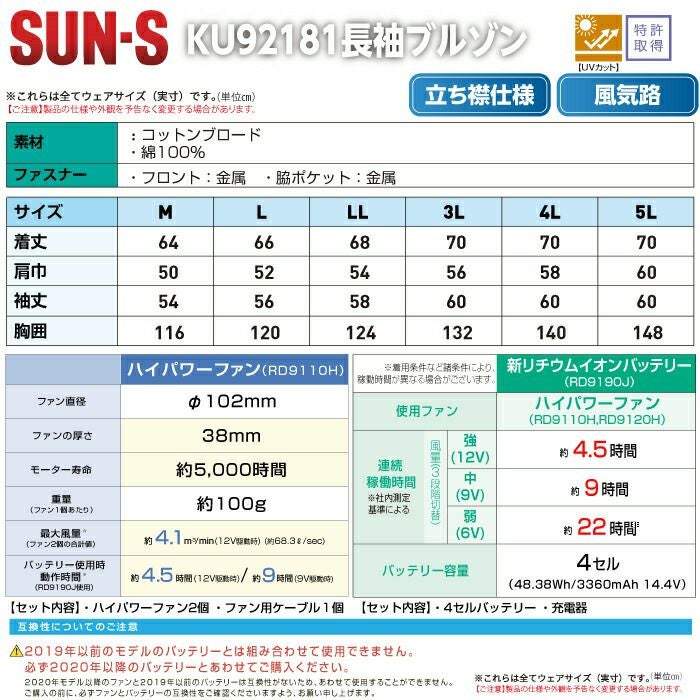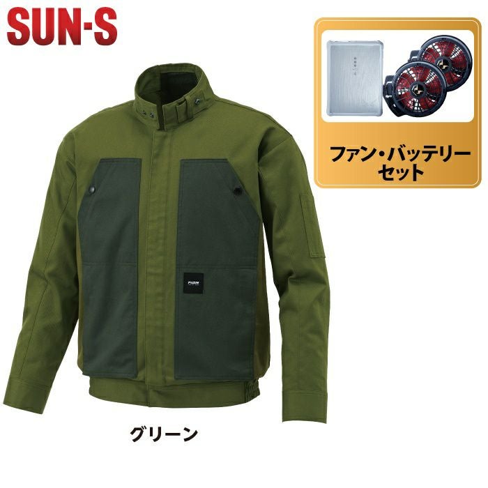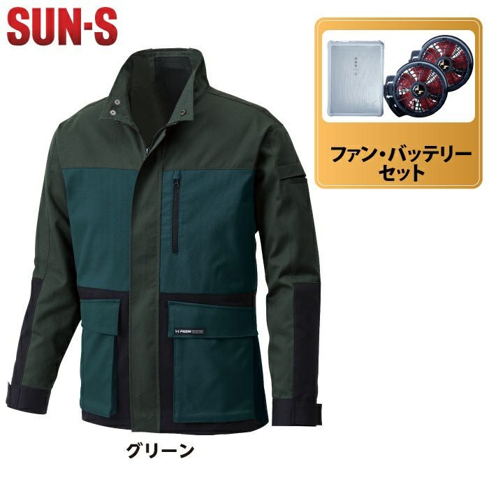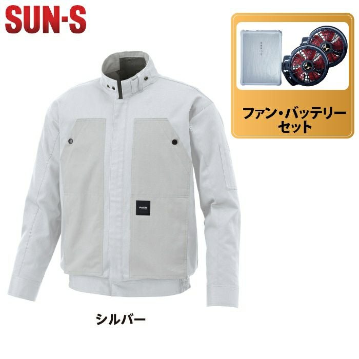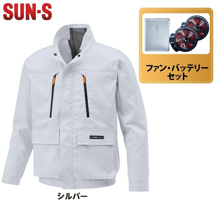 ファン対応ウェア 春夏用 サンエス KU92181setR3 長袖ブルゾン ファンとバッテリセット M-5L