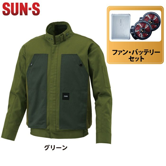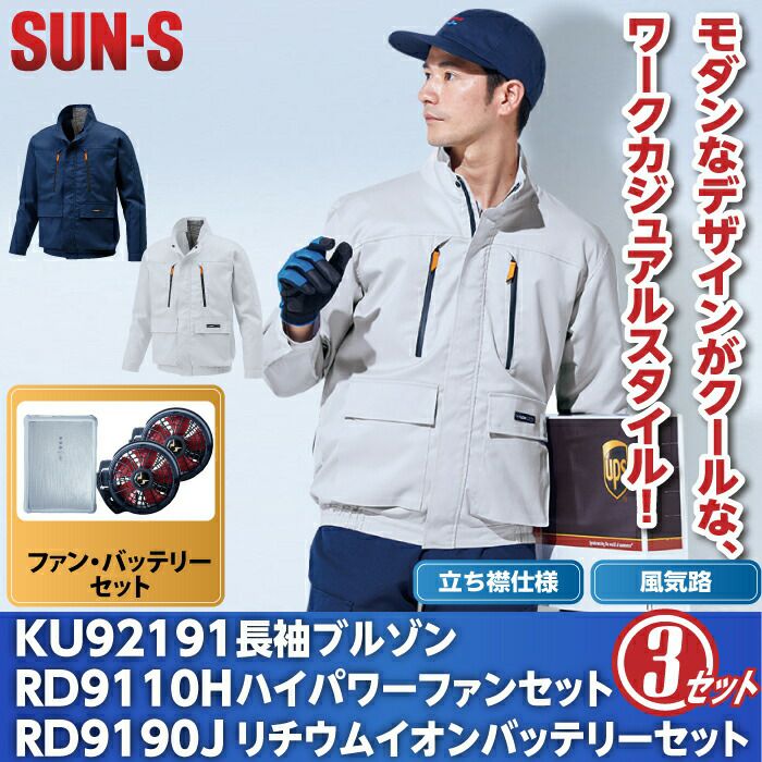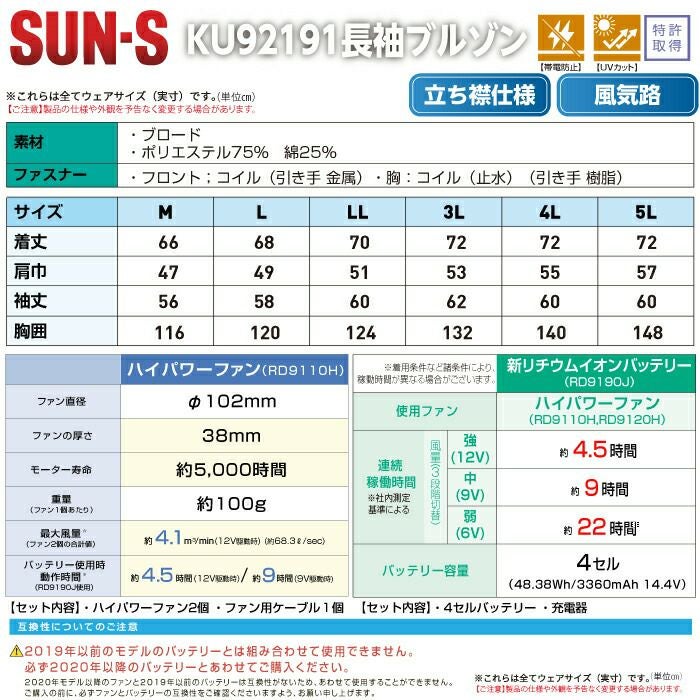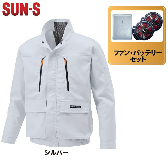 ファン対応ウェア 春夏用 サンエス KU92191setR3 長袖ブルゾン ファンとバッテリセット M-5L