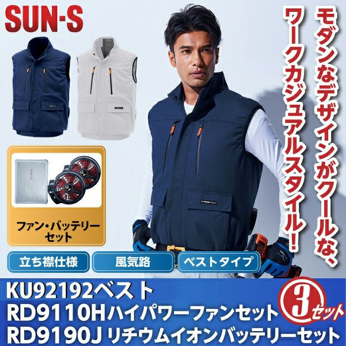 ファン対応ウェア 春夏用 サンエス KU92192setR3 ベスト ファンとバッテリセット M-5L