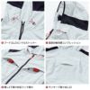 ◇機能:フロントファスナー・フードストレッチパイピン・袖ペン差し・両胸マチ入りポケット・フードゴム・ファスナー付きバッテリーポケット・ケーブル止めマジックテープ・首回り風抜け仕様