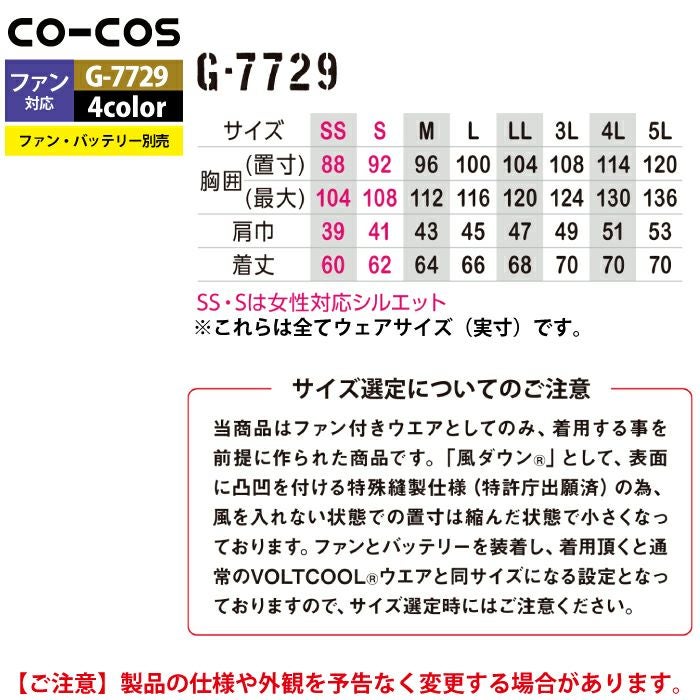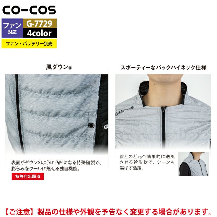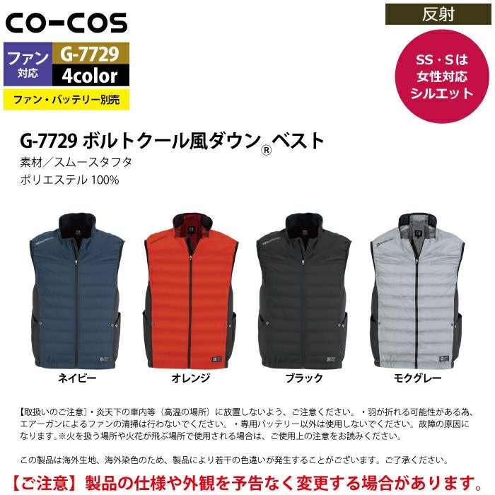 空調服 コーコス 作業服 作業着 ファン付きウェア (服のみ) 春夏用 コーコス G-7729 ボルトクール風ダウンベスト SS-5L