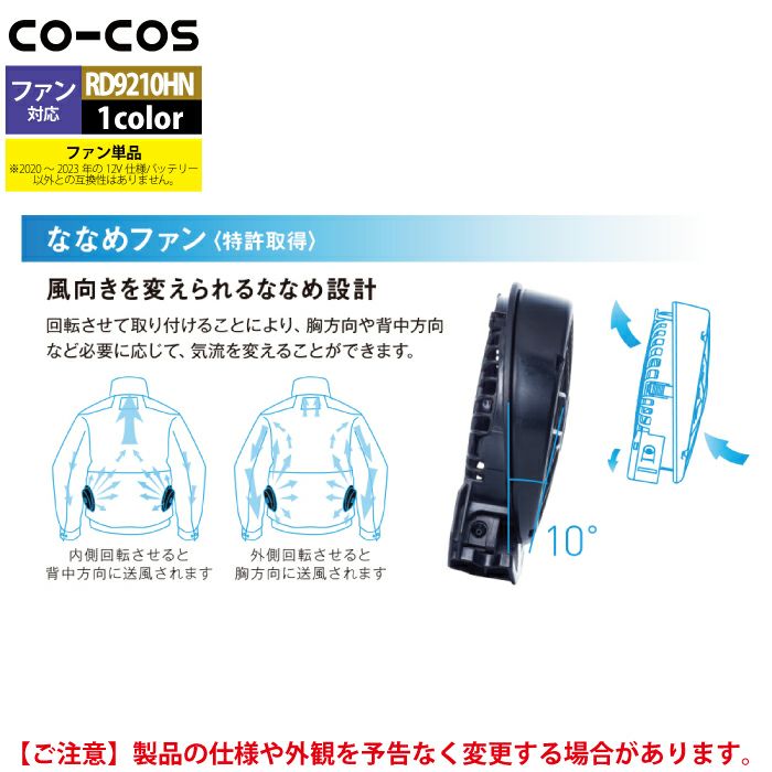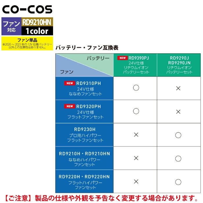空調服 コーコス 作業服 作業着 ファン付きウェア 春夏用 コーコス RD9210HN ななめハイパワーファンセット F
