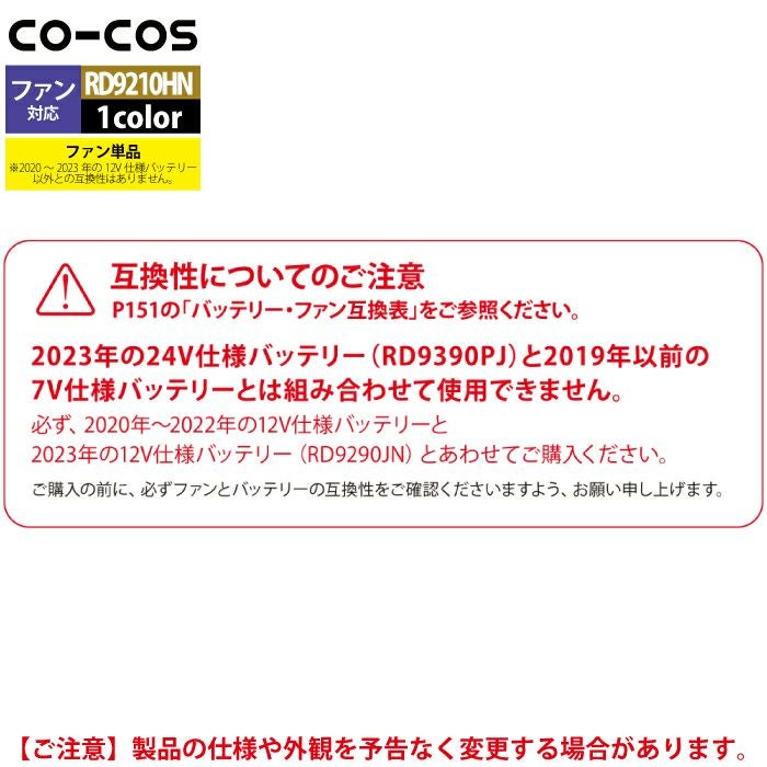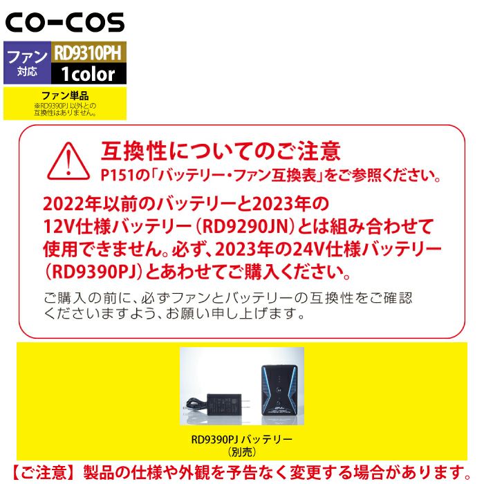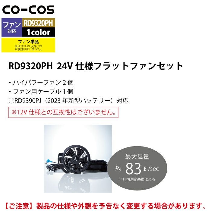 空調服 コーコス 作業服 作業着 ファン付きウェア 春夏用 コーコス RD9230PH 24V仕様フラットファンセット F