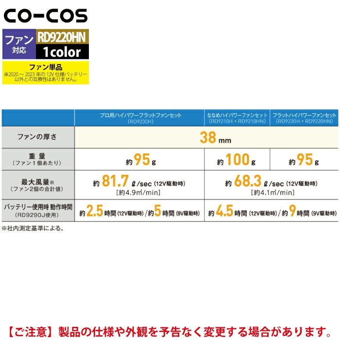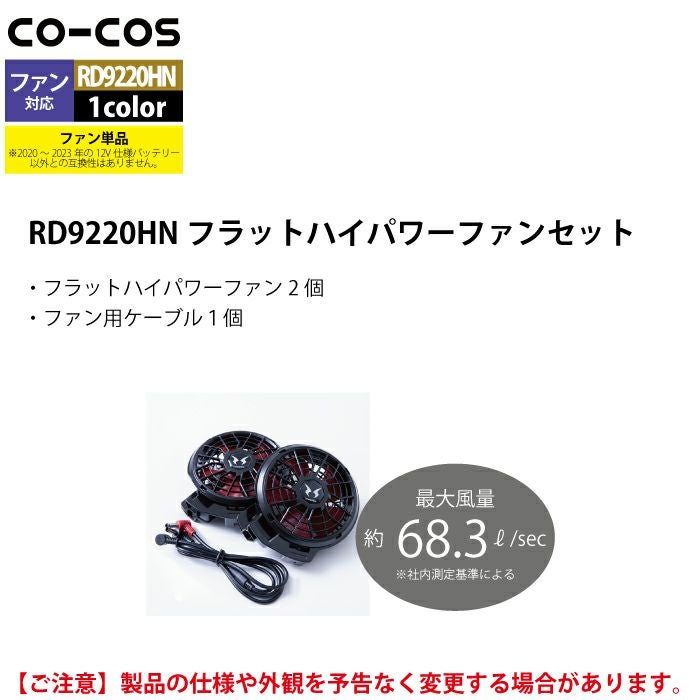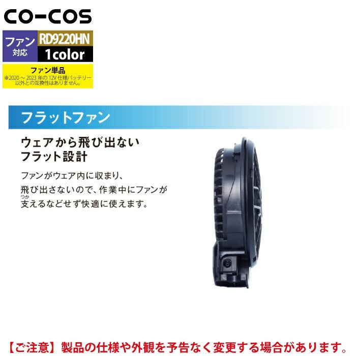 空調服 コーコス 作業服 作業着 ファン付きウェア 春夏用 コーコス RD9220HN フラットハイパワーファンセット F