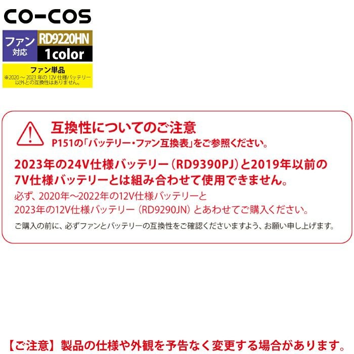 ※同一メーカーの「バッテリー」+「ファン」+「ウェア」でお使いください