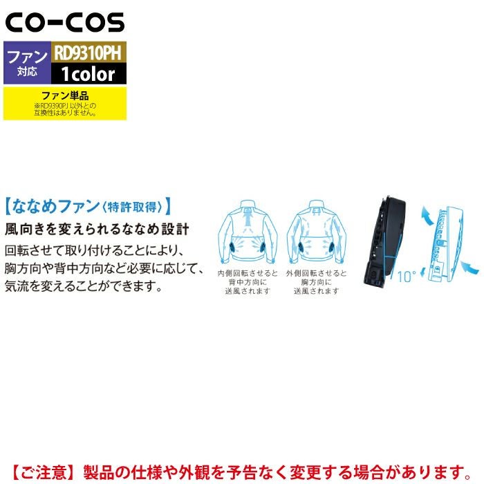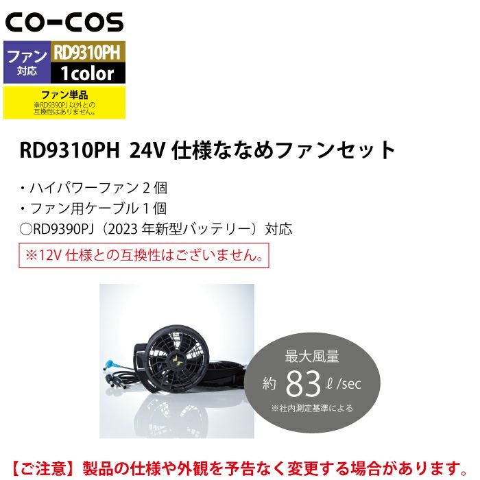 空調服 コーコス 作業服 作業着 ファン付きウェア 春夏用 コーコス RD9310PH 24V仕様ななめファンセット F