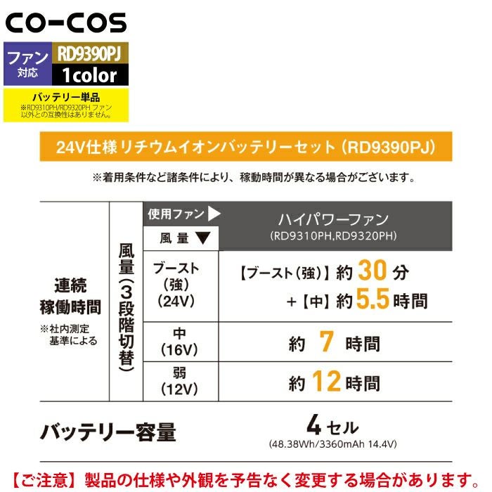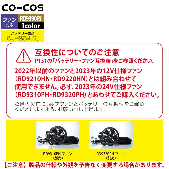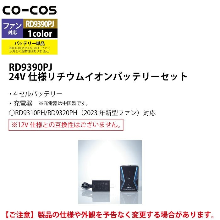 空調服 コーコス 作業服 作業着 ファン付きウェア 春夏用 コーコス RD9390PJ 24V仕様リチウムイオンバッテリーセット F