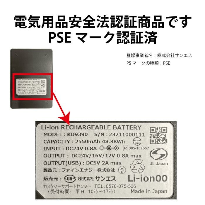 空調服 電動ファン付きウェア 作業服 作業着 ファン付きウェア 春夏 サンエス 作業服 RD9490AJ バッテリー単体(5セルバッテリーのみ) F 作業着