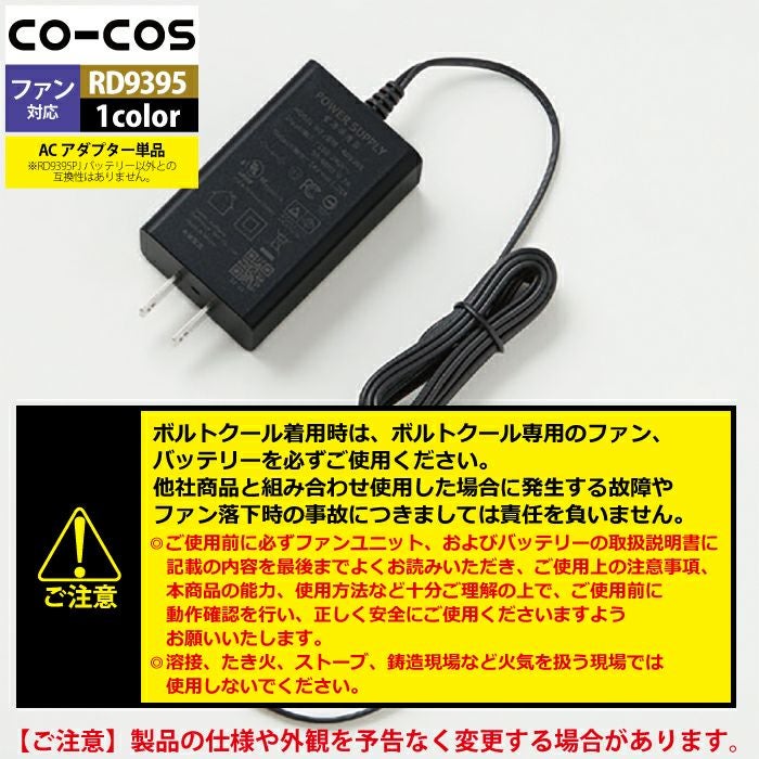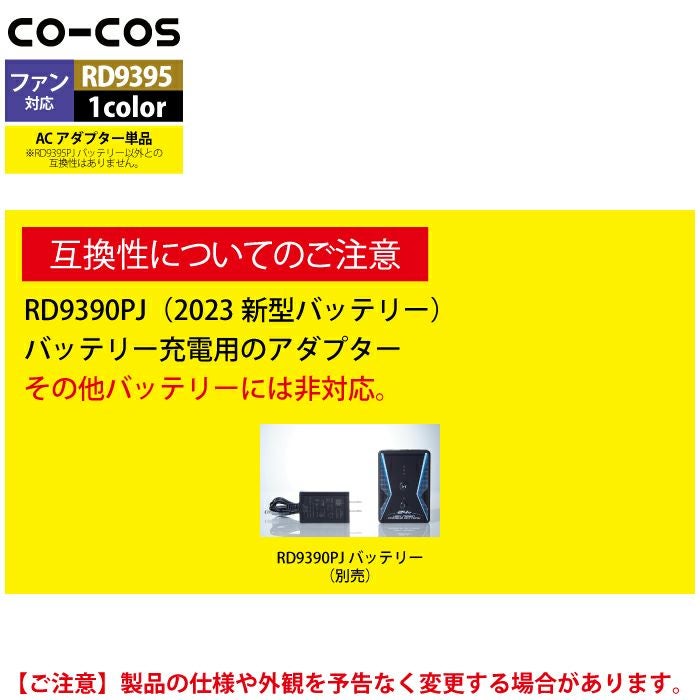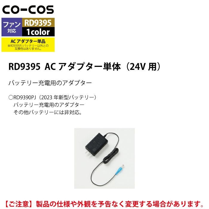 空調服 コーコス 作業服 作業着 ファン付きウェア 春夏用 コーコス RD9395 ACアダプター単体(24V用) F