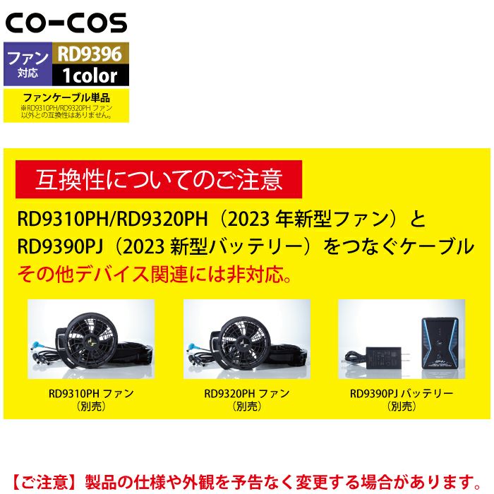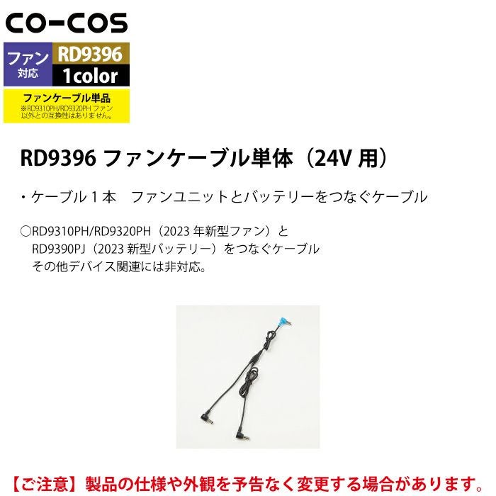 空調服 コーコス 作業服 作業着 ファン付きウェア 春夏用 コーコス RD9396 ファンケーブル単体(24V用) F