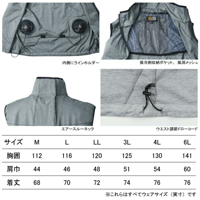 警備服・防犯商品 ファン対応ウェア G-best GK413setR2 長袖警備服 ファンとバッテリセット S-5L ワッペンや吊紐は付属なし