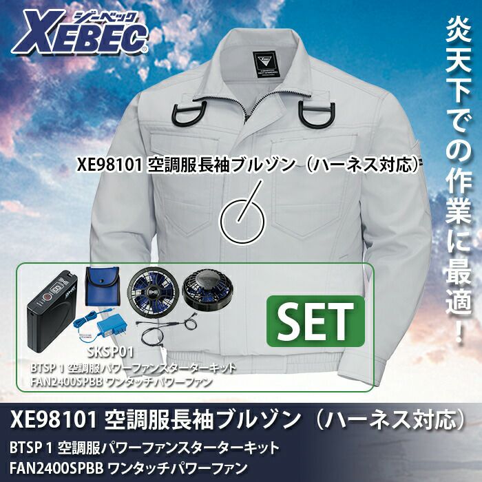空調服 電動ファン 作業服 XEBEC 空調服 電動 ファン対応 春夏用 ジーベック 作業服 作業着 XE98101setR2 長袖ブルゾン(ハーネス対応) ファンとバッテリセット S-5L 作業服 空調服