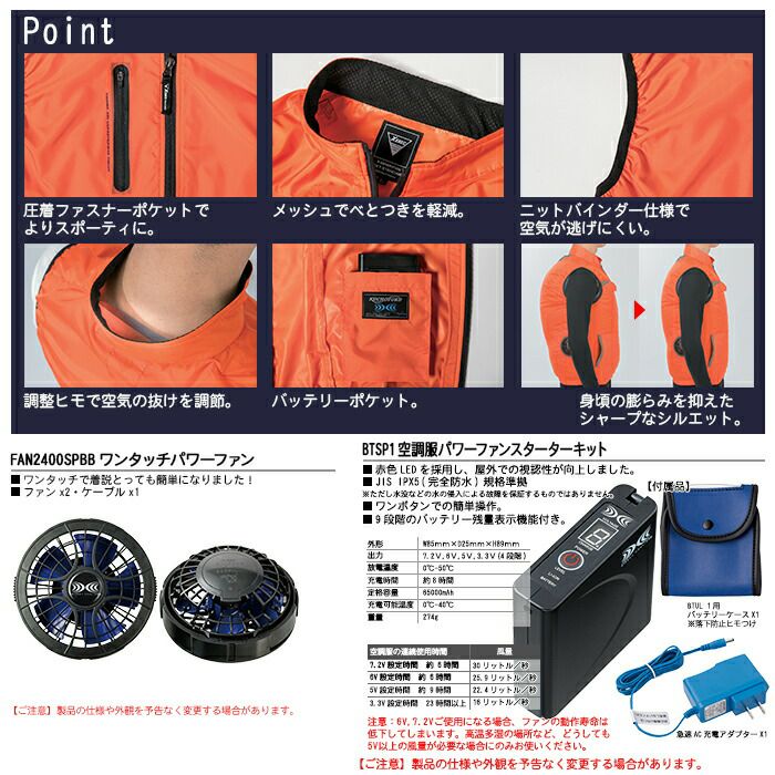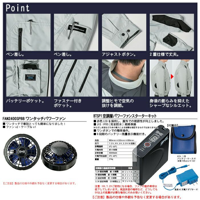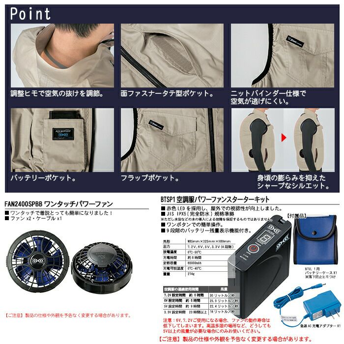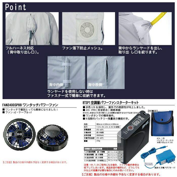 ※同一メーカーの「バッテリー」+「ファン」+「ウェア」でお使いください