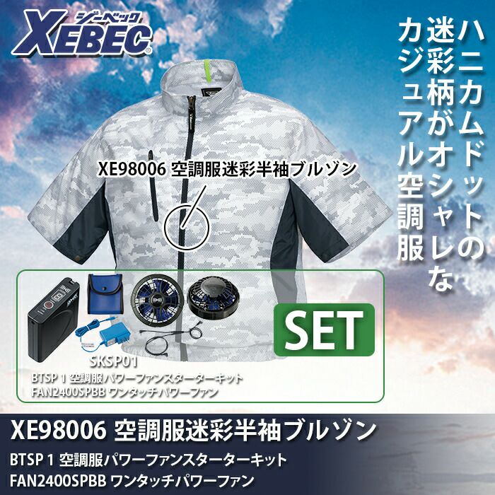 空調服 電動ファン 作業服 XEBEC 空調服 電動 ファン対応 春夏用 ジーベック 作業服 作業着 XE98006setR2 迷彩半袖ブルゾン ファンとバッテリセット SS-5L 作業服 空調服