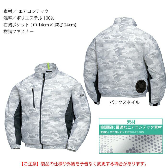 空調服 電動ファン 作業服 XEBEC 空調服 電動 ファン対応 春夏用 ジーベック 作業服 作業着 XE98005setR2 迷彩長袖ブルゾン ファンとバッテリセット SS-5L 作業服 空調服