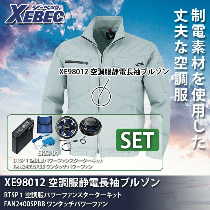 空調服 電動ファン 作業服 XEBEC 空調服 電動 ファン対応 春夏用 ジーベック 作業服 作業着 XE98012setR2 制電長袖ブルゾン ファンとバッテリセット S-5L 作業服 空調服
