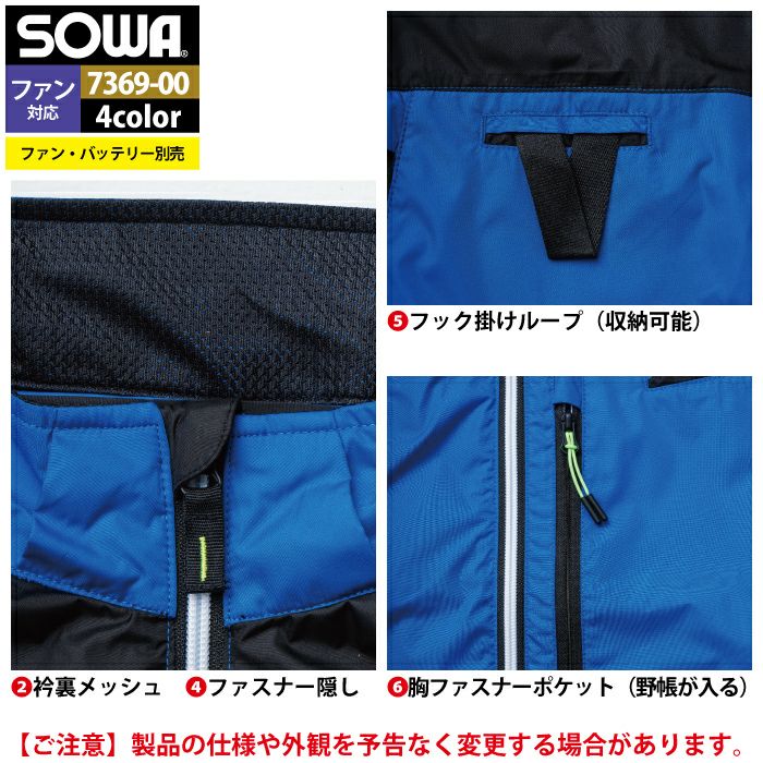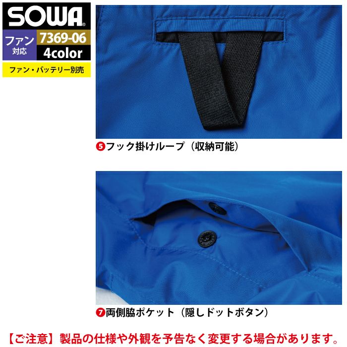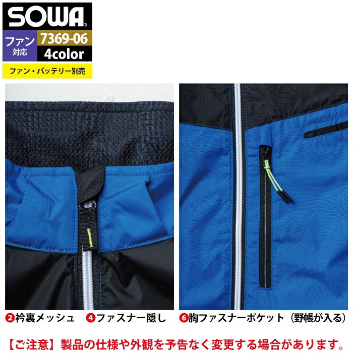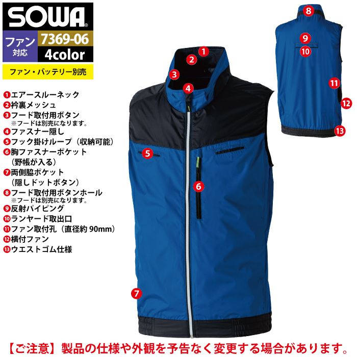 空調服 桑和 SOWA 作業服 作業着 ファン付きウェア(服のみ) 桑和 SOWA 作業服 7369-06 EFベスト 6L 作業着 春夏
