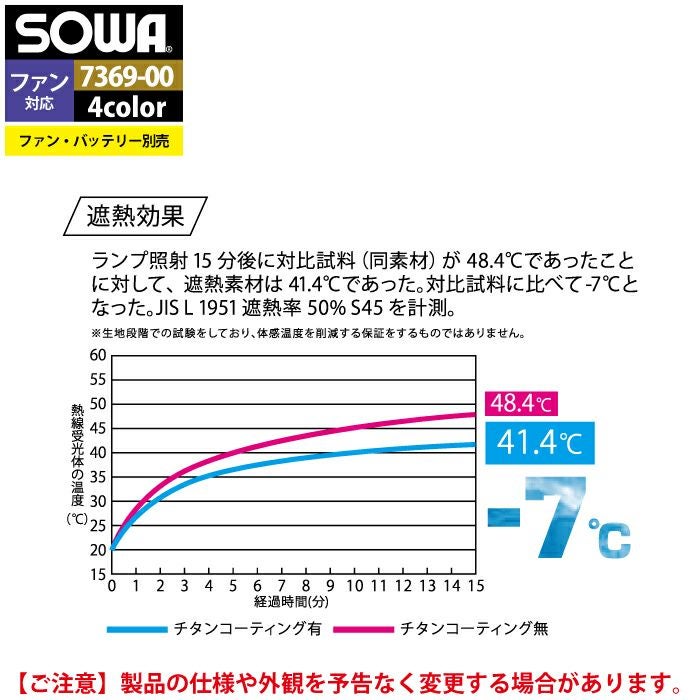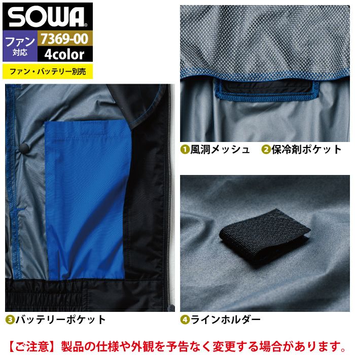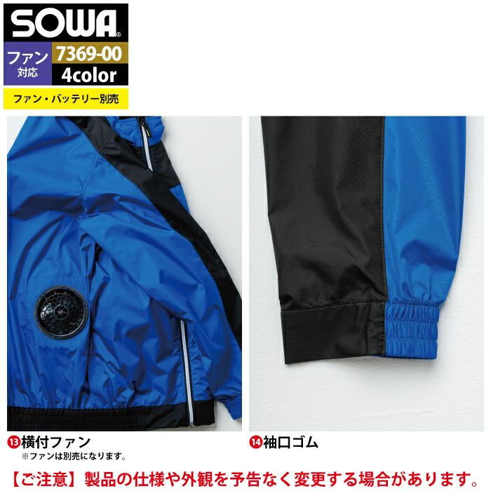 空調服 桑和 SOWA 作業服 作業着 ファン付きウェア(服のみ) 桑和 SOWA 作業服 7369-11 半袖EFブルゾン 4L 作業着 春夏