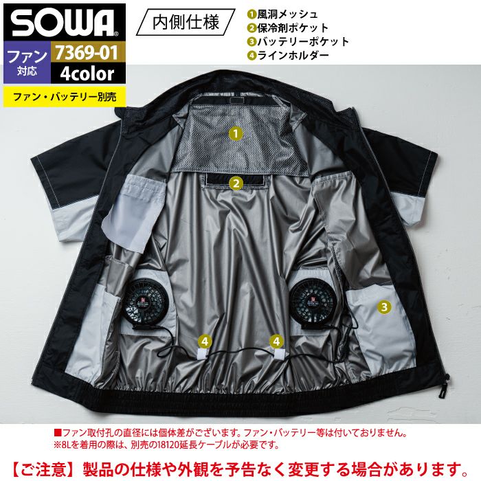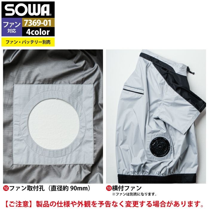 空調服 桑和 SOWA 作業服 作業着 ファン付きウェア(服のみ) 桑和 SOWA 作業服 7369-01 半袖EFブルゾン 4L 作業着 春夏